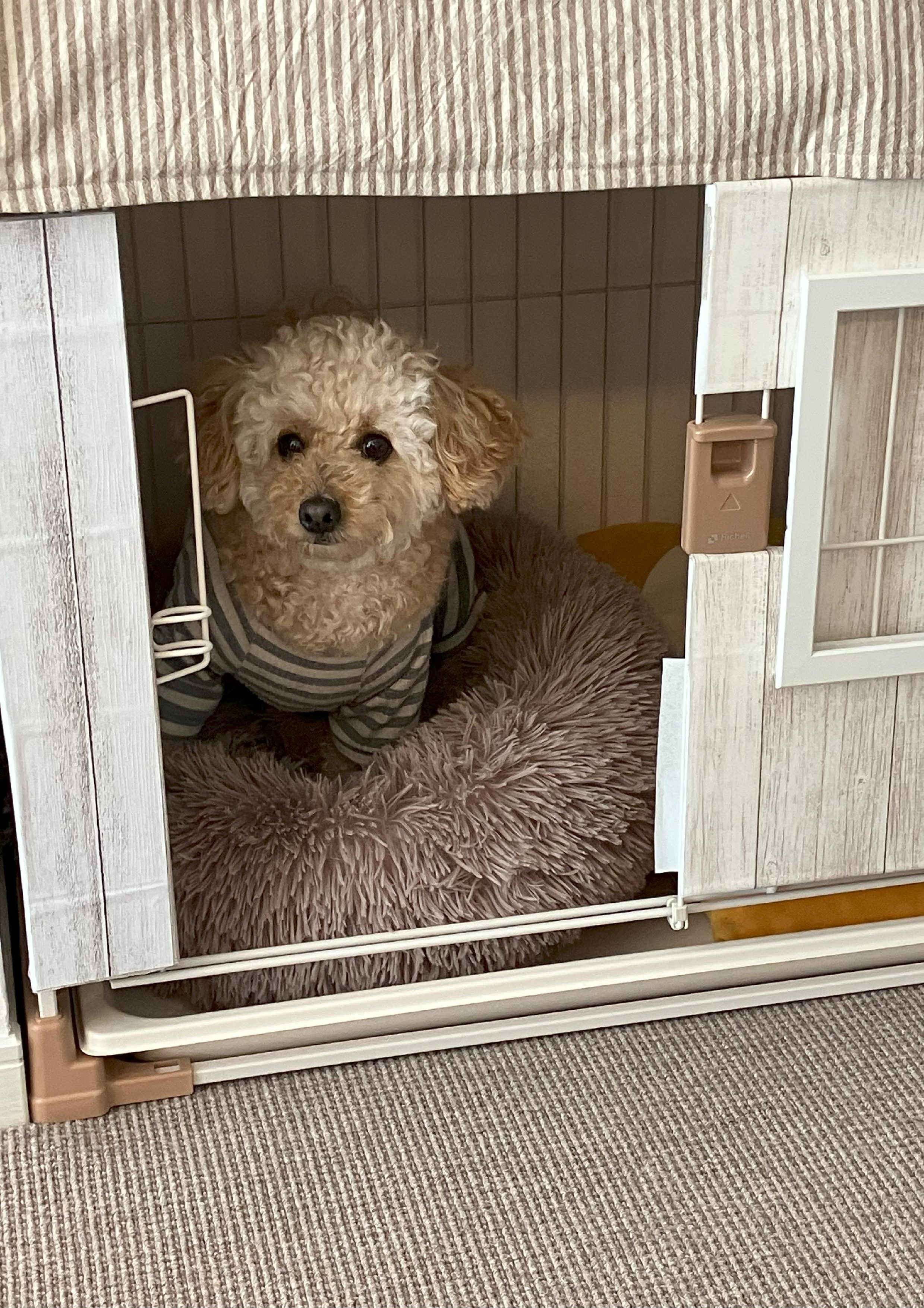 コロちゃんのケージは、赤ちゃんの時に使用していたモノを奥様がお部屋の雰囲気に合わせて可愛くリメイクしてくれました。