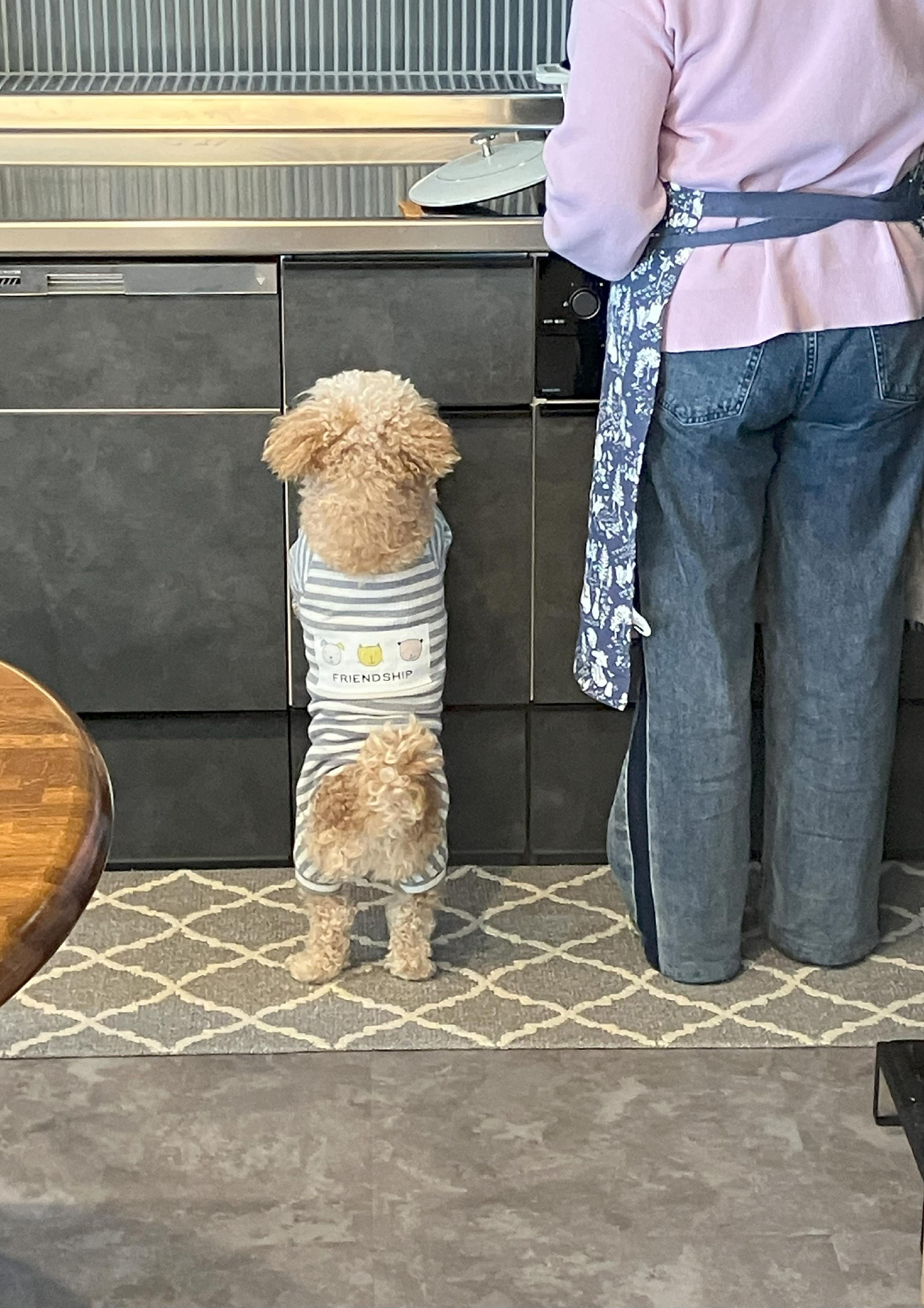 キッチンの撮影中には、モデルコロちゃんの可愛い1枚が撮れました。撮影中、たくさん協力してくれたのでお腹がすいてしまったようです。何作ってるの?(笑)何していても可愛いコロちゃん。
