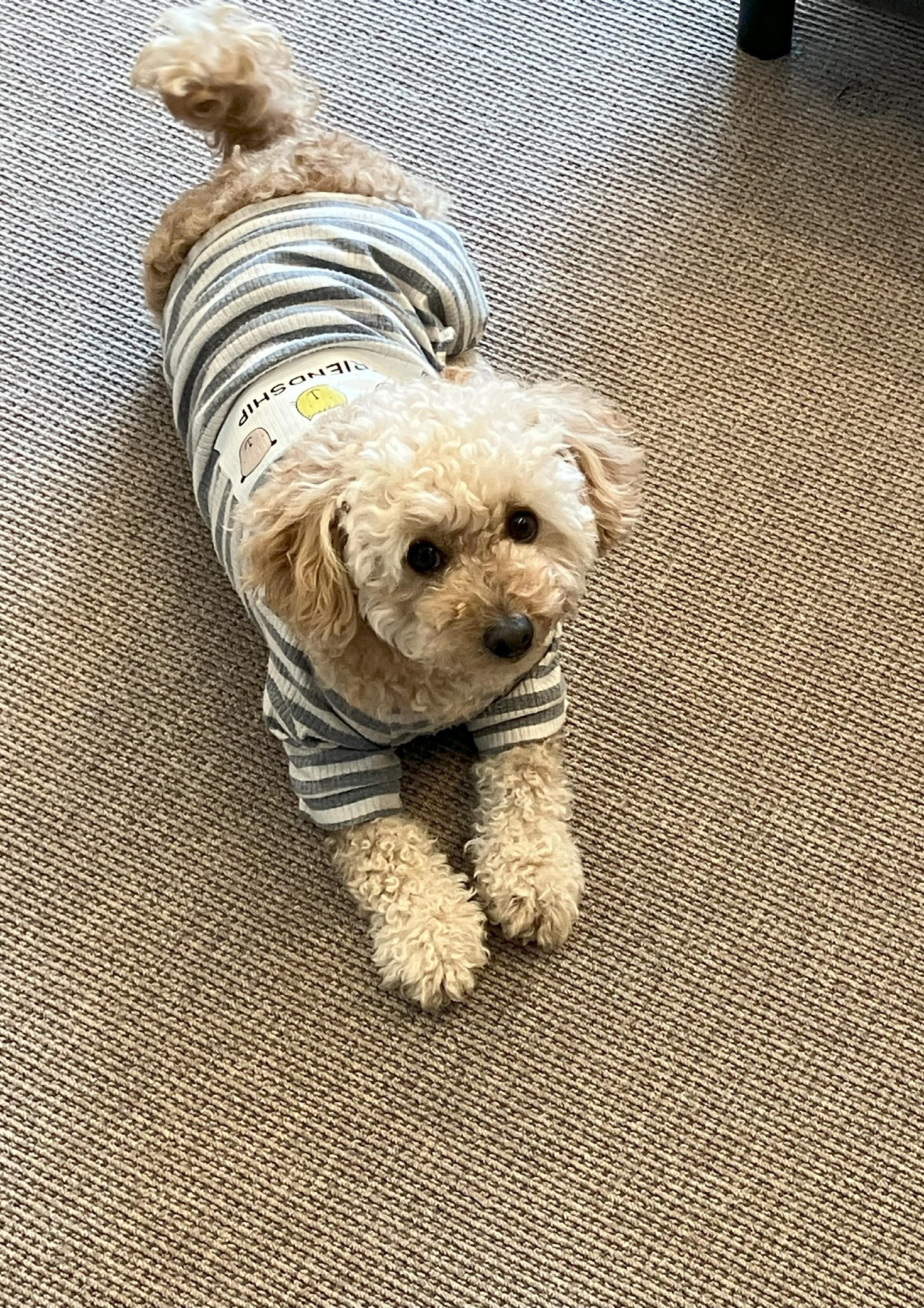 コロちゃん、トリミング台の上に座りカメラ目線でモデルもしてくれました。