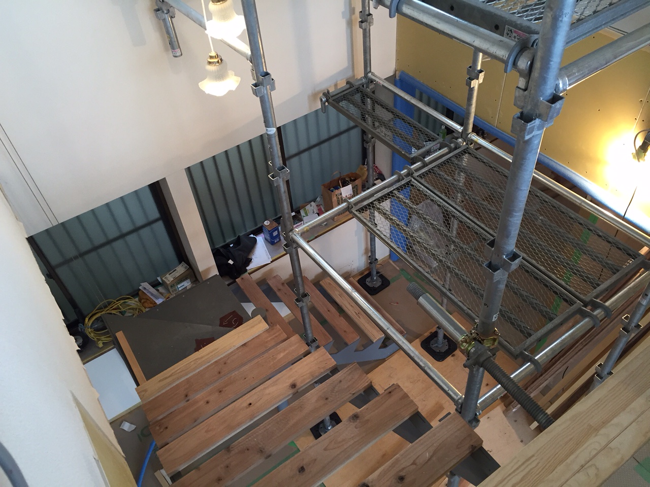 踏み板はまだ、仮なので、まだまだ“スリリング”状態は