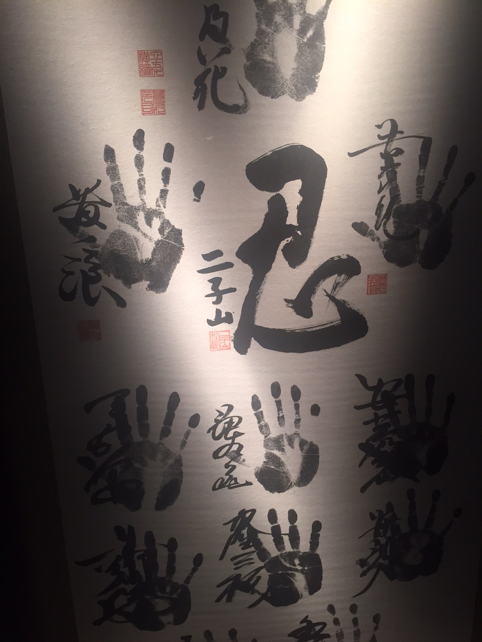 酔って、帰りに力士の方の手形と自分の手形を比べて、“大きいね~”と