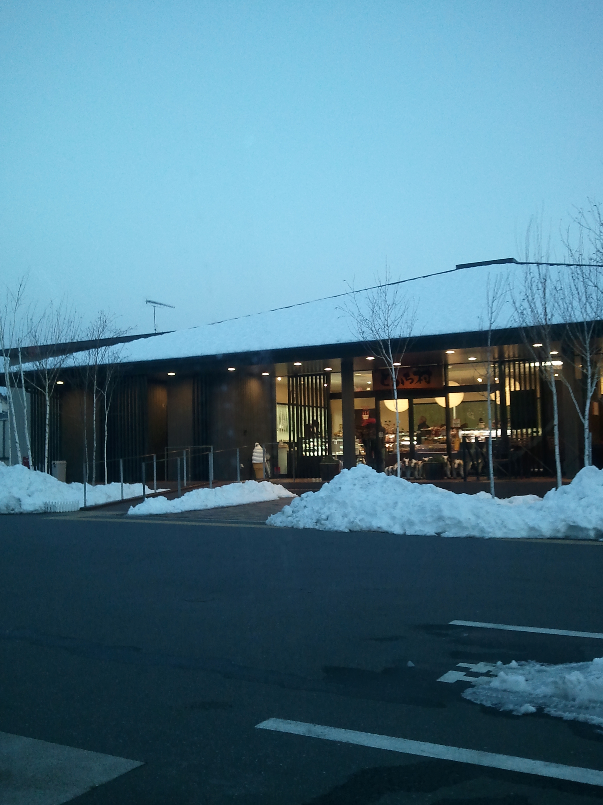 屋根に雪が積もり、さながら北海道です。