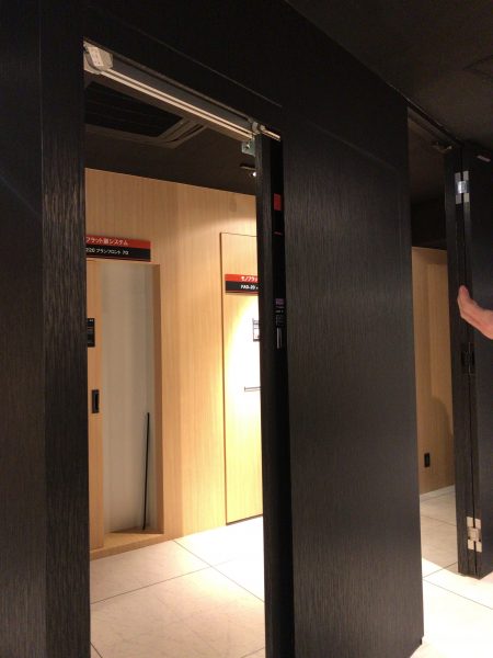 軽く押すとなんと手前右側にスライドして扉が開きました!