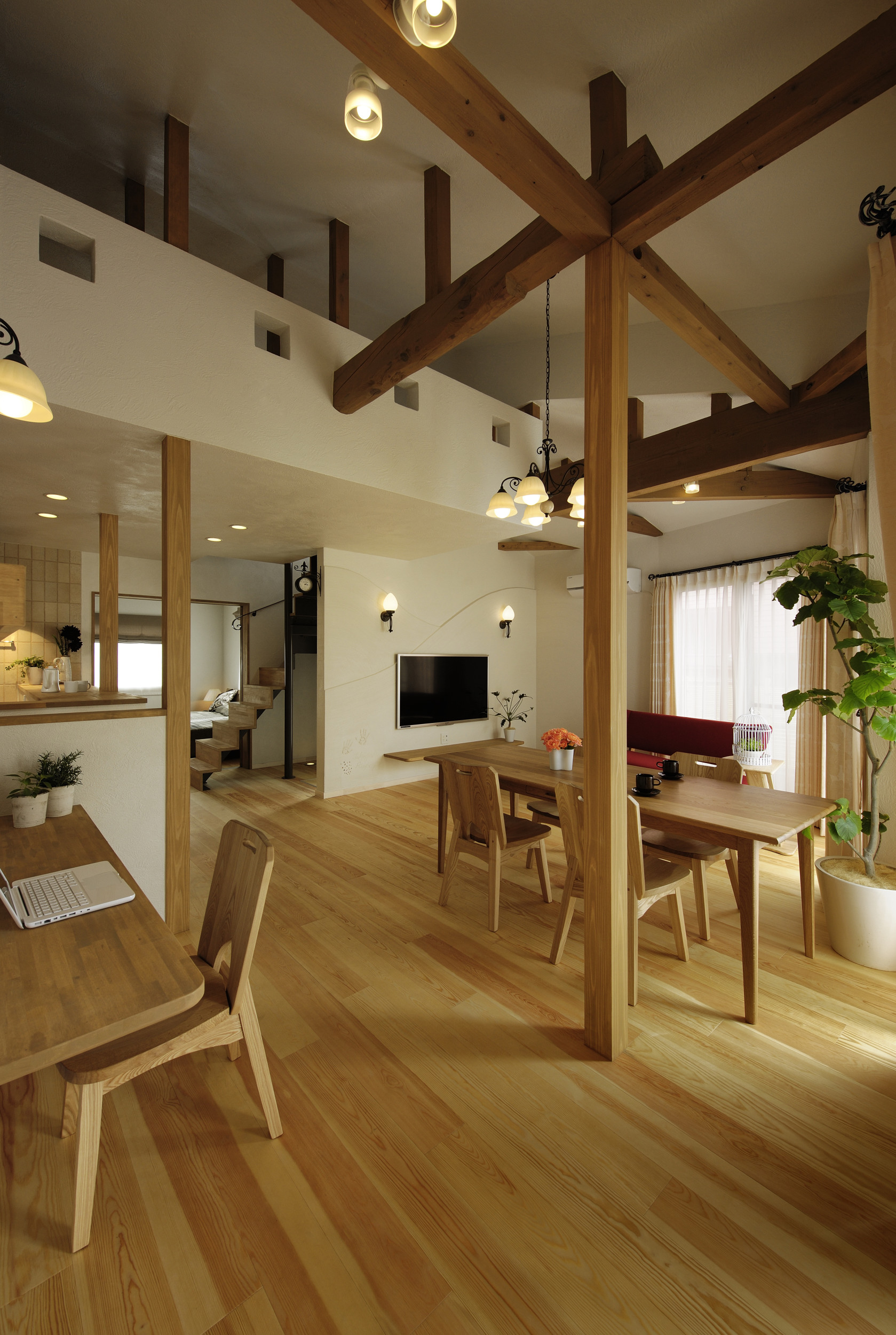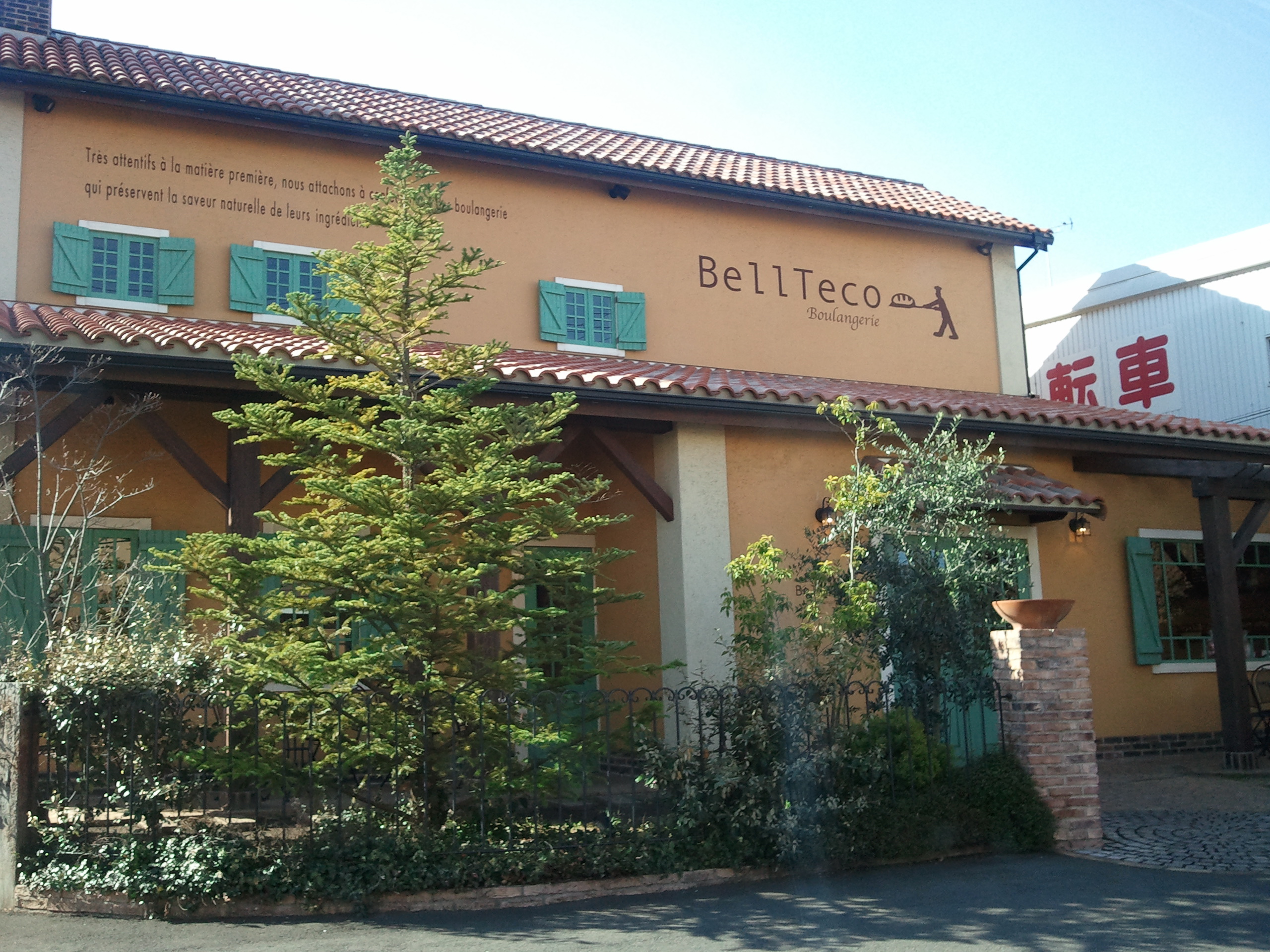 プロヴァンス風なかわいらしい造りの建物の開放的なカフェコーナーで