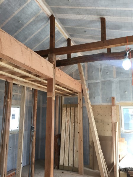 現在進行中のお家では断熱材のセルロースファイバーを施工しました。