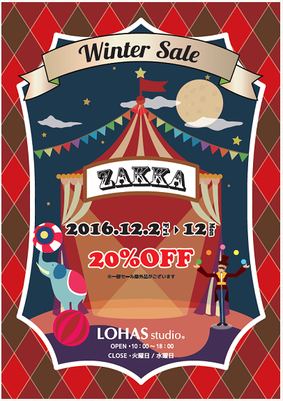 LOHAS studio練馬店で、12/2(金)~12/12(月)の間、雑貨20%OFFセールを開催致しております!