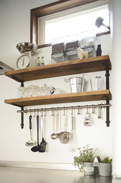 キッチンの飾り棚の下にキッチンハンガーを設置しました。