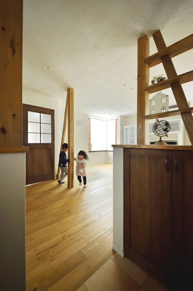 畳コーナーの前の筋交いは、ぐるぐるまわれるのがすごく楽しいようで、