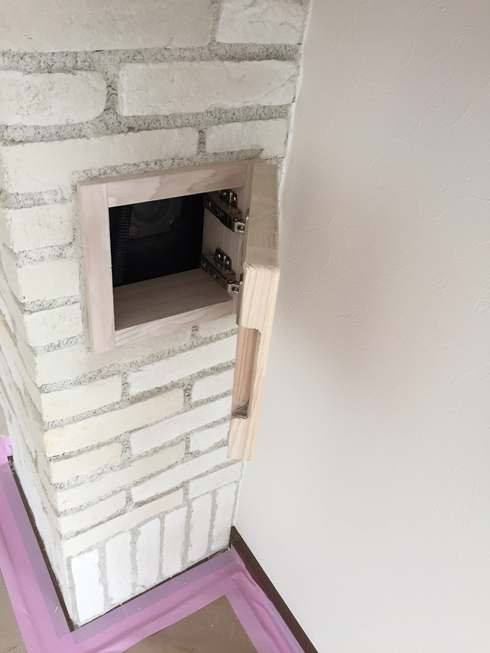 そもそものパイプスペースを素敵に魅せるために、ブリックタイルを貼ったので、