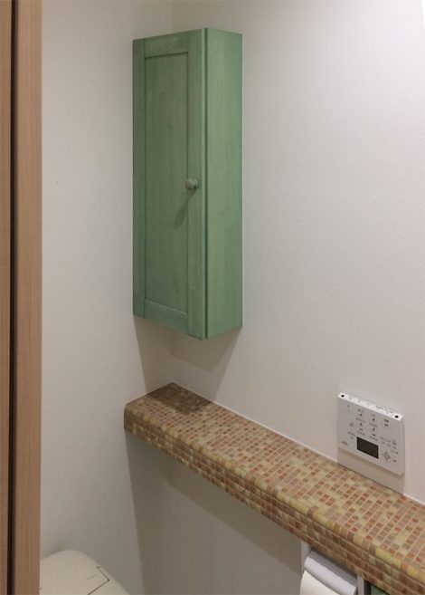 座ったままトイレットペーパーが取り出せるようにと、お客様との打合わせで決定したことなんです。