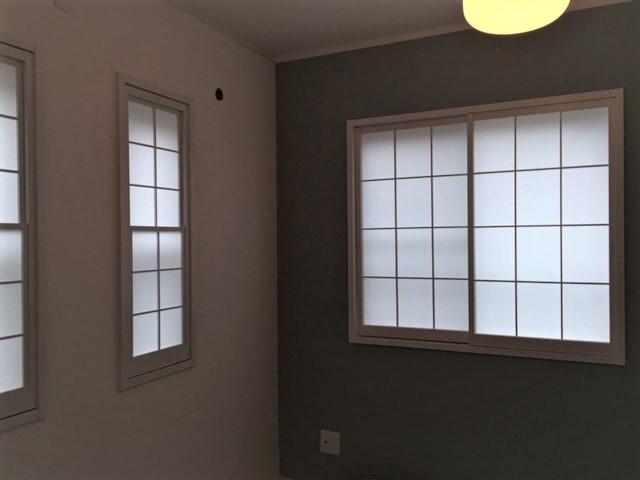 既存の障子枠をホワイトに塗装して、障子紙は無地の「ワーロンシート」という、