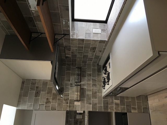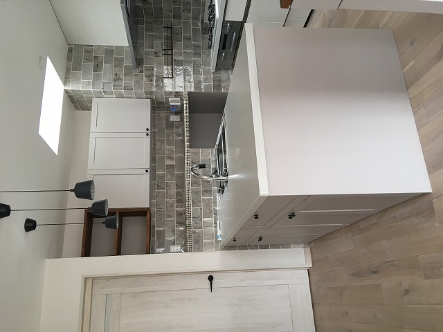 ガス側は既製品の扉なのですが、グレーとも馴染みが良いホワイトを選んでますし、