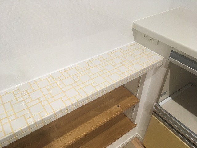 キッチンのイエローに合わせて、タイルの目地も「ひまわり色」にしました。