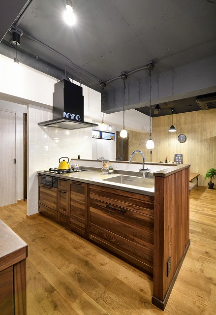 レンジフードから伸びる現しのダクトもカッコイイ。