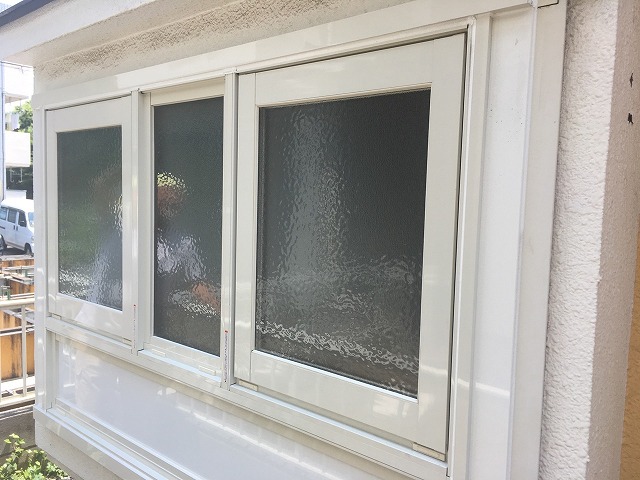 アルミのフレームとパネルを駆使して、外壁を傷めずに窓の交換に成功しました。