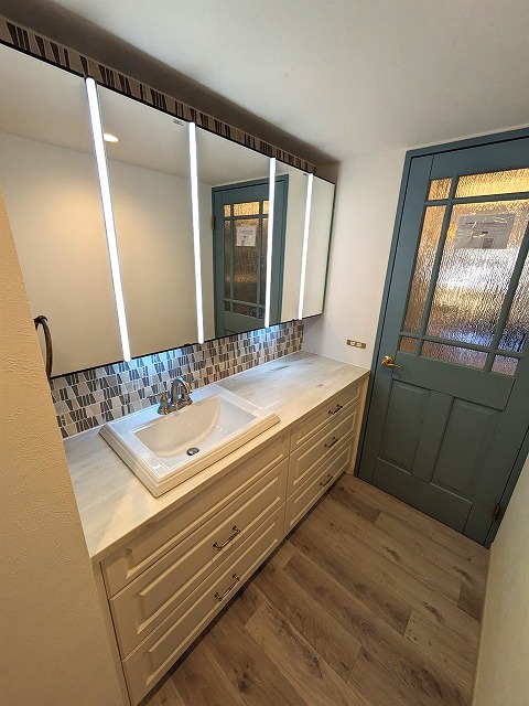 世界にひとつだけの素敵な洗面化粧台が完成しました。