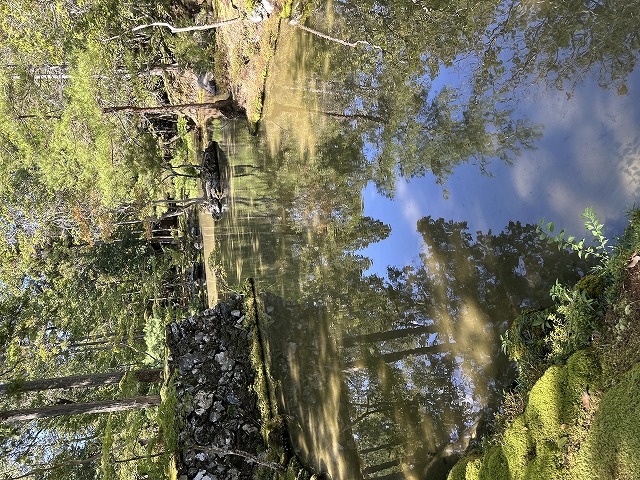 樹々が逆さに映り込む。