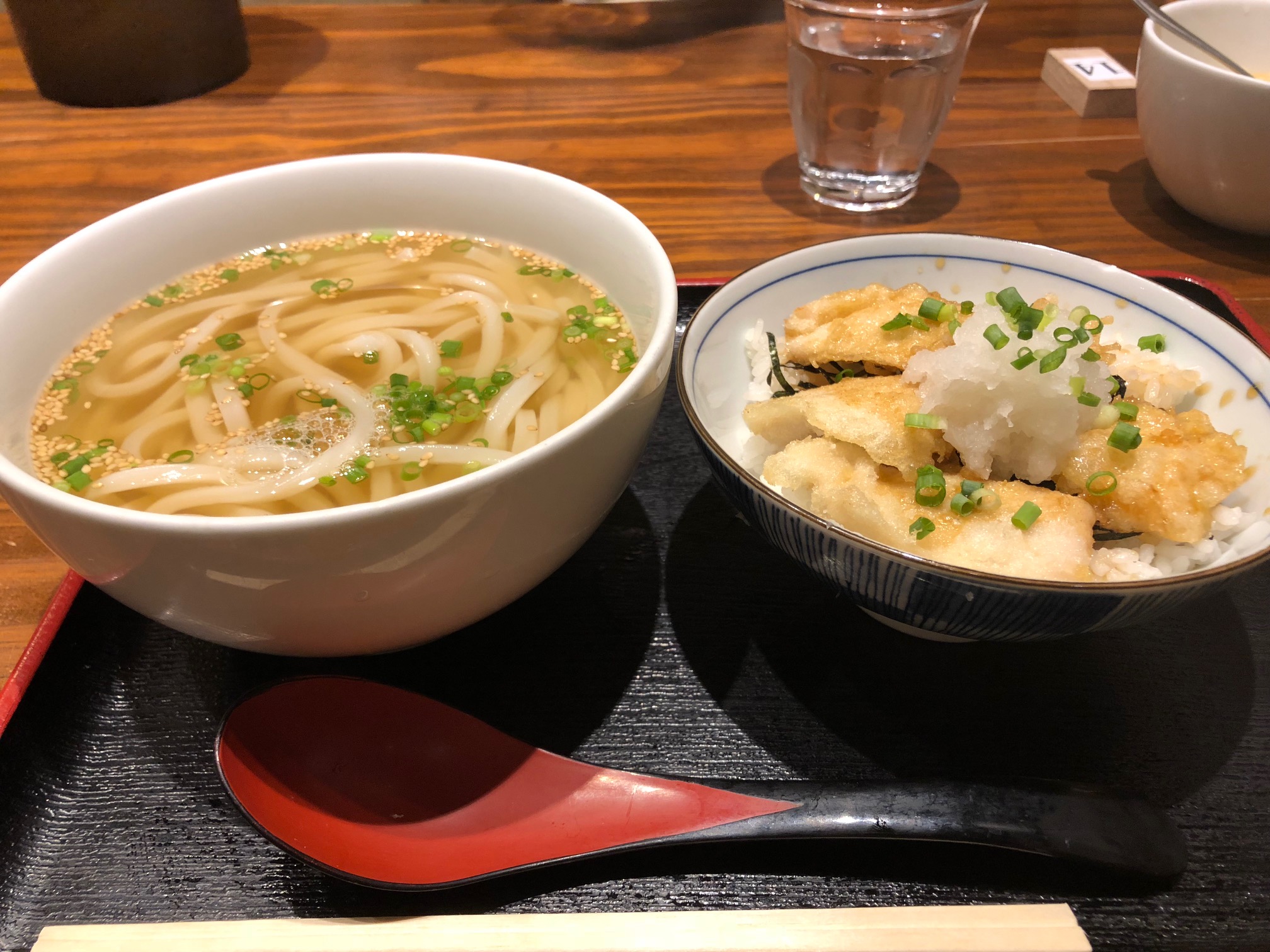 鶏天丼と上品な味のうどんはとっても美味しかったです。♪
