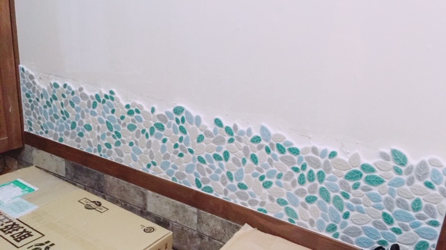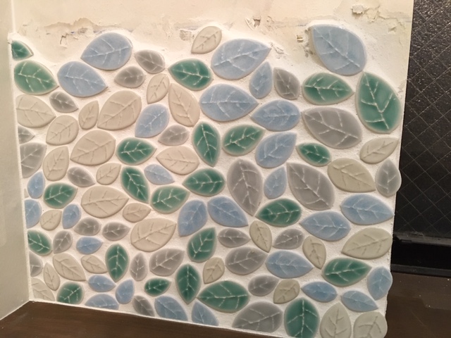 葉形タイルに目地が入りました!