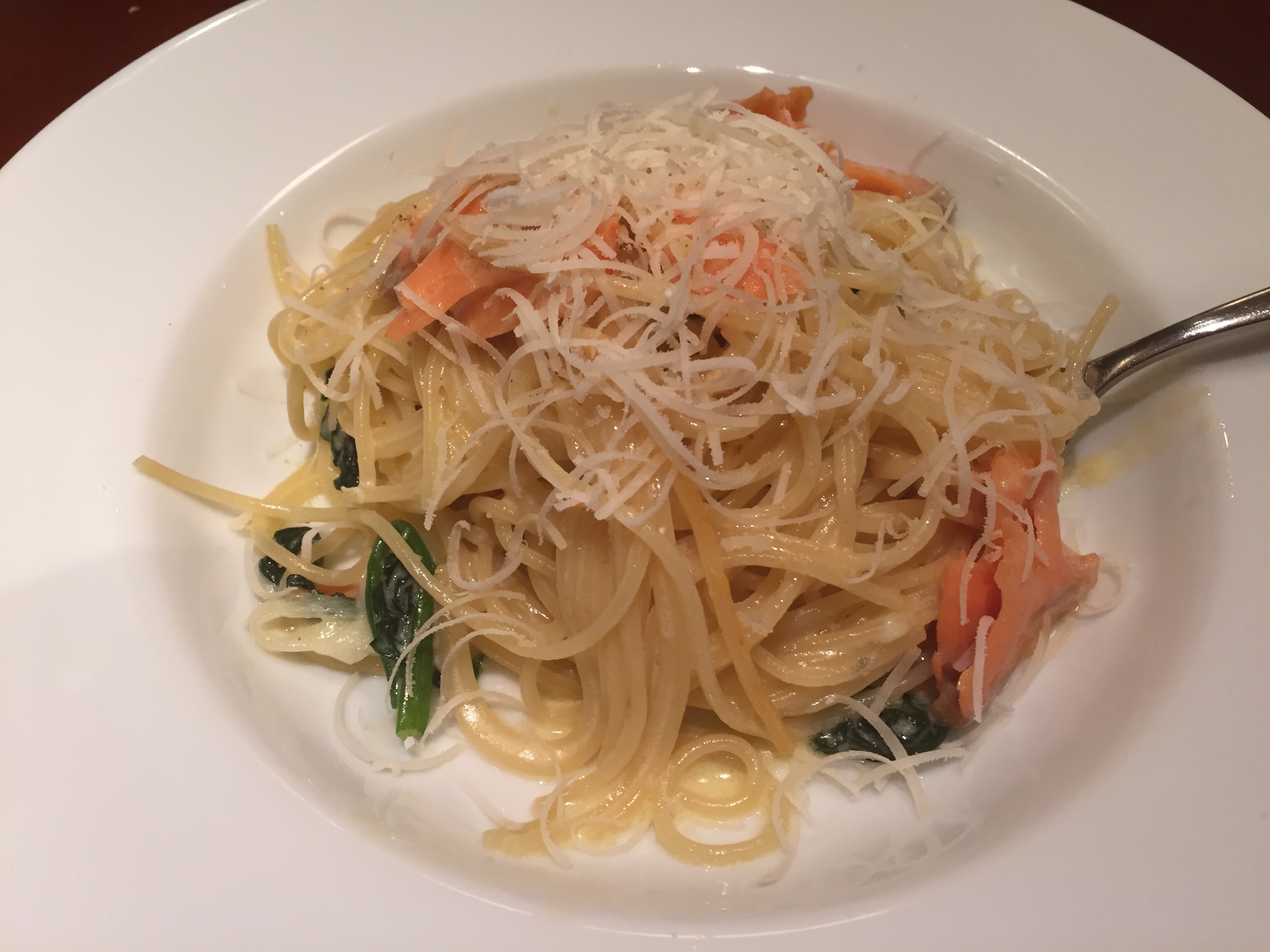 サーモン&ほうれん草のクリームパスタに