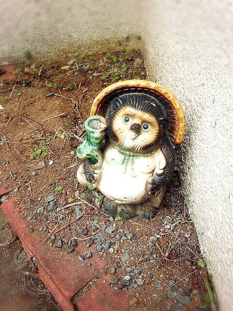 現場を去る時、ユーモラスな狸さんと目が合いました。