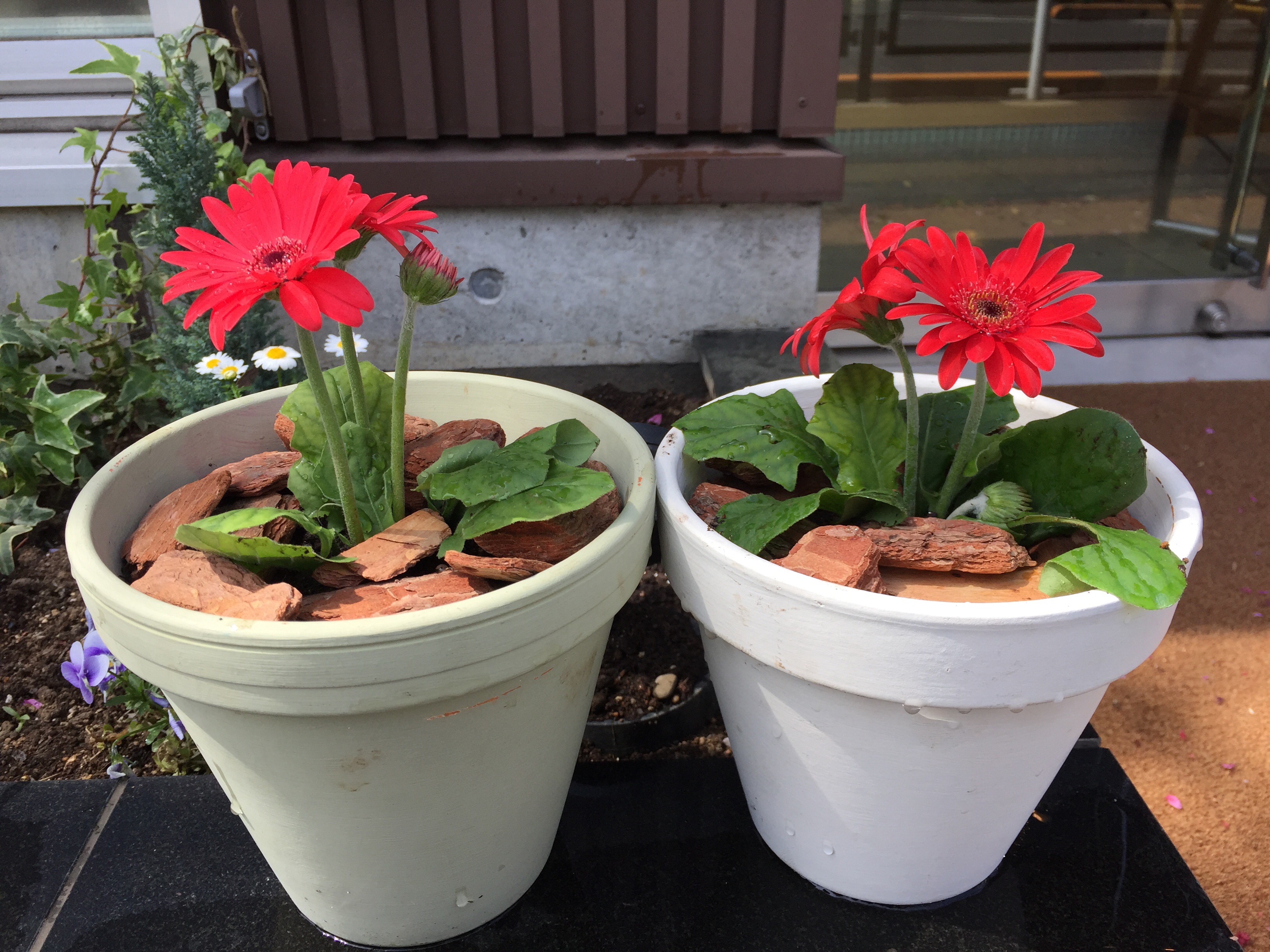 私が好きな花、ガーベラを植木鉢に植え替えました。