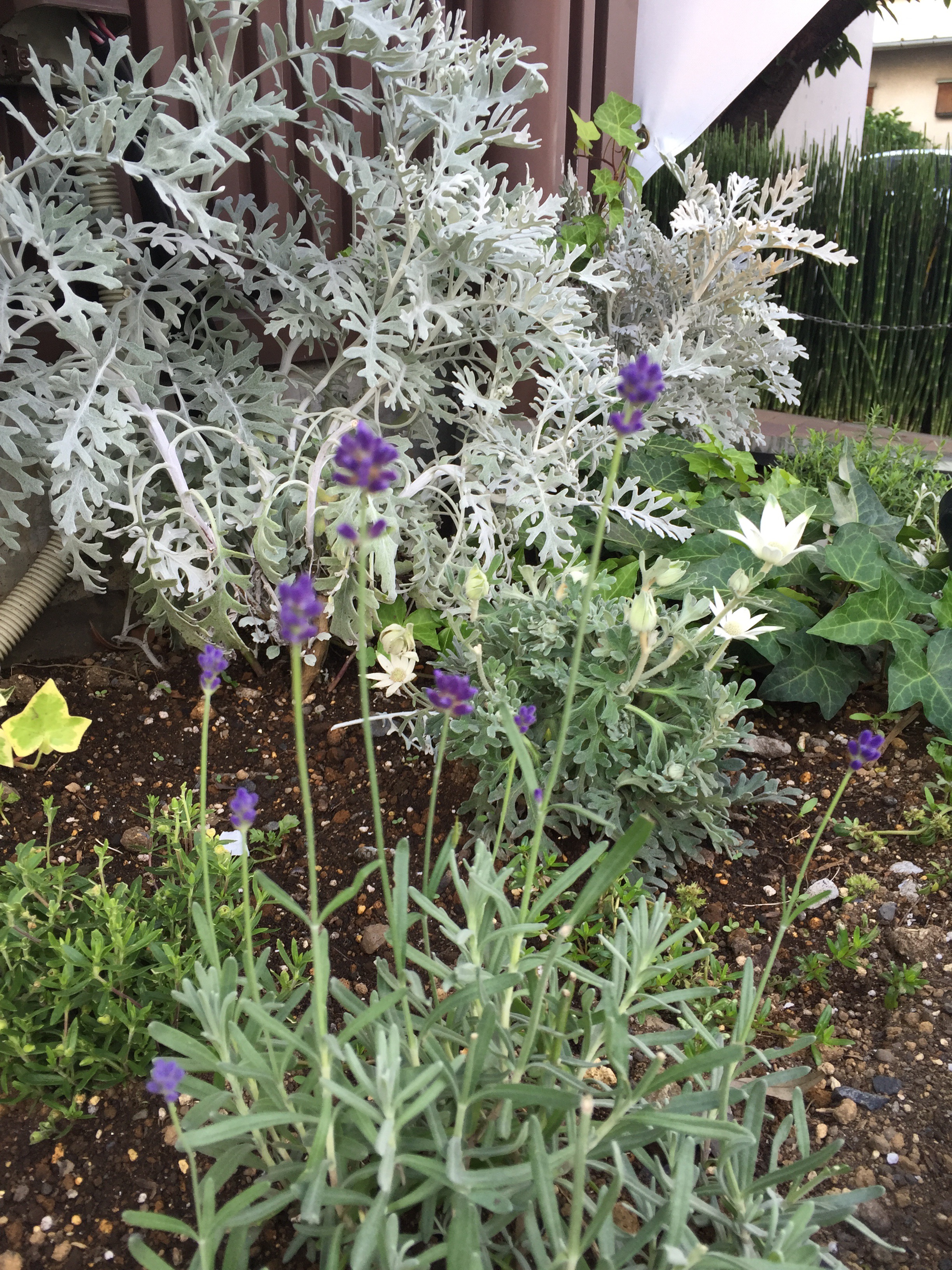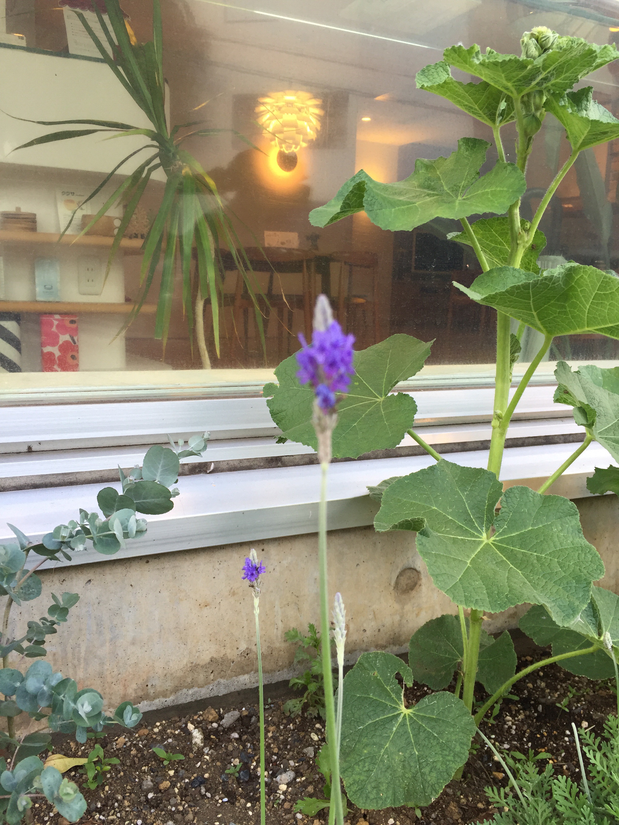 定休日明け、世田谷店に出勤すると… 花壇の花やグリーンは元気です♪ 2種類のラベンダーも花を咲かせています!