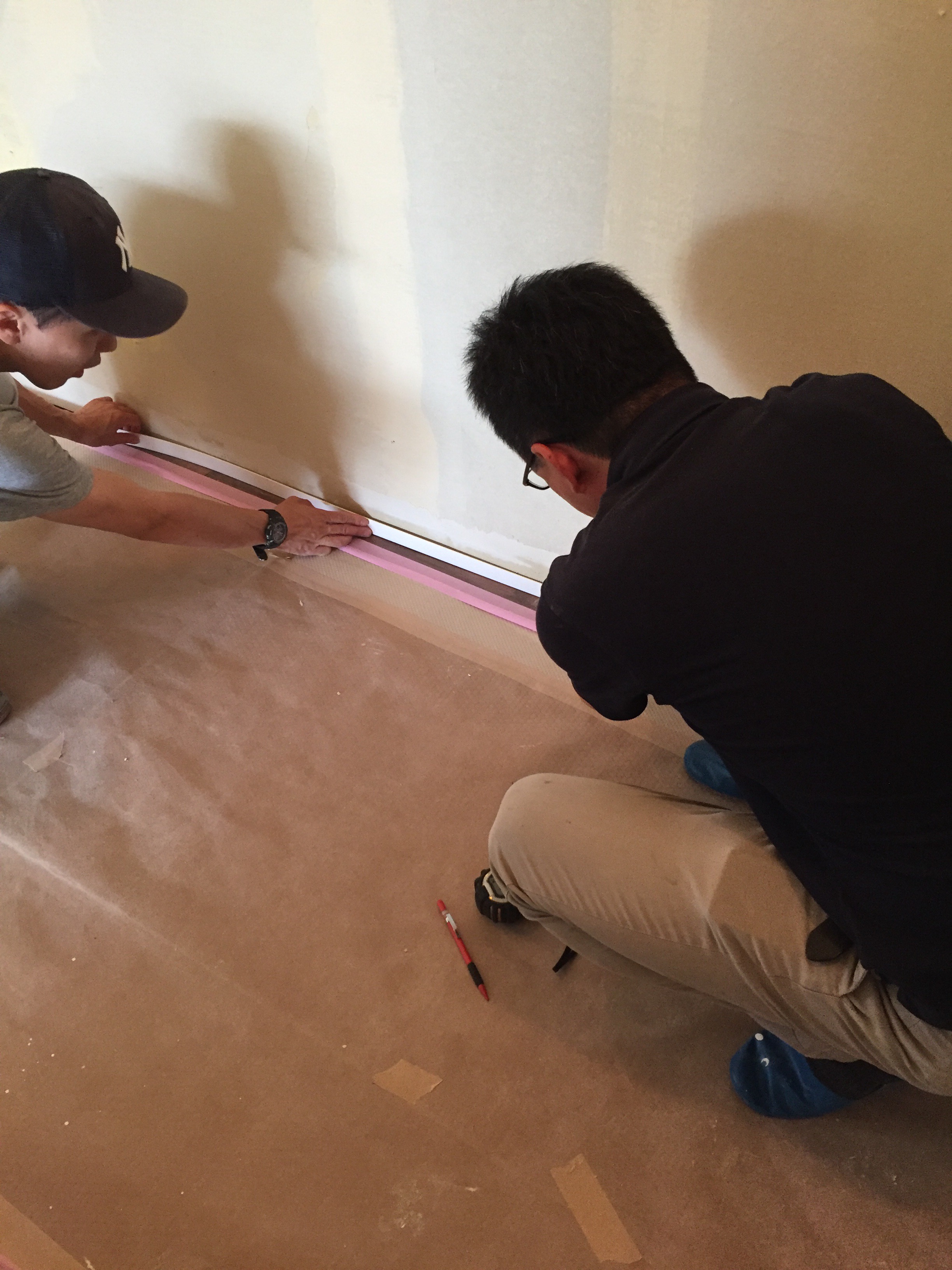 進行中の現場確認とカーテンの打ち合わせをしました。