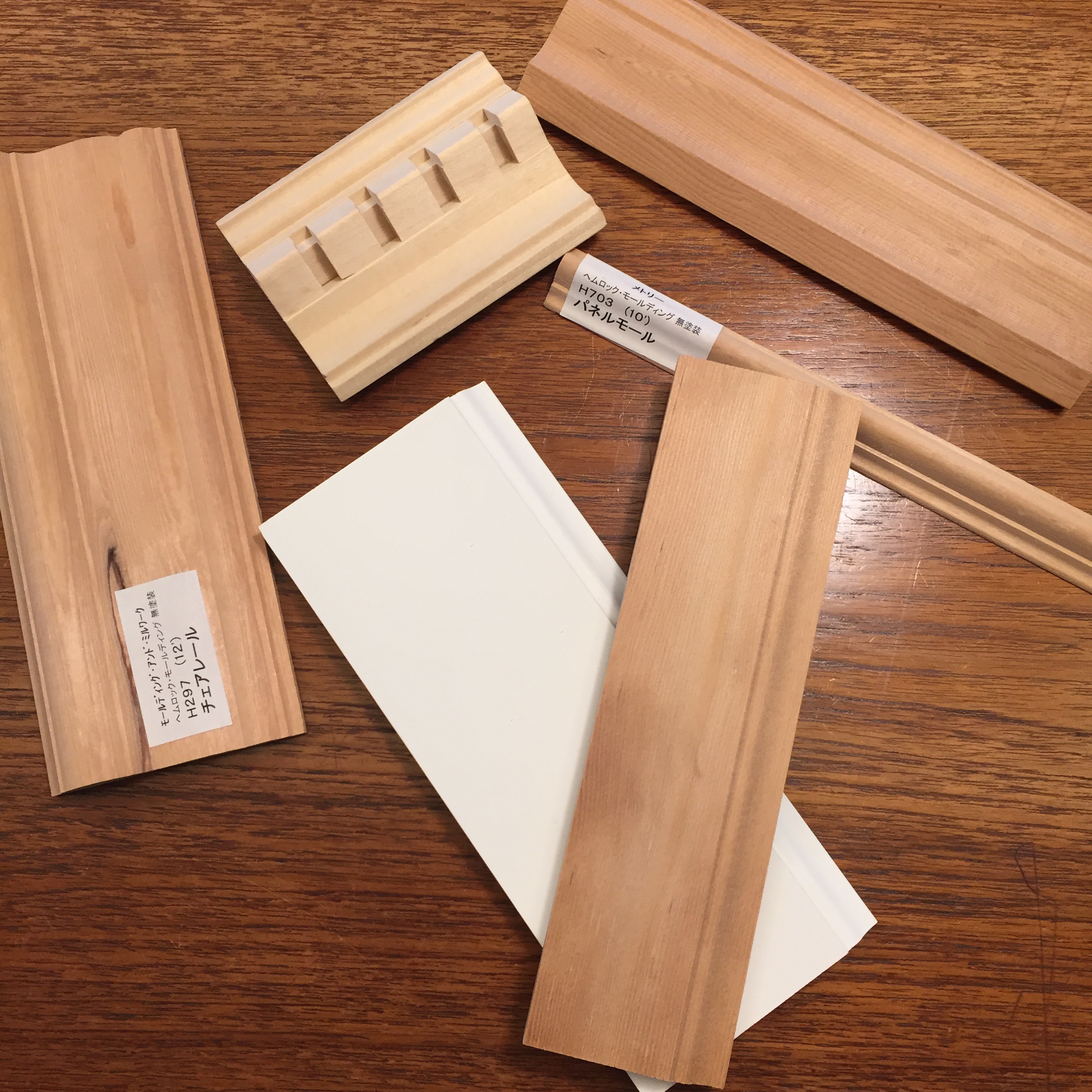 最近気になるトラディショナルスタイル… 存在感あるガッチリした廻り縁と幅木! エレガントで美しい空間に仕上がると思います。 サンプルを集めてニンマリ愉しんでいます♪