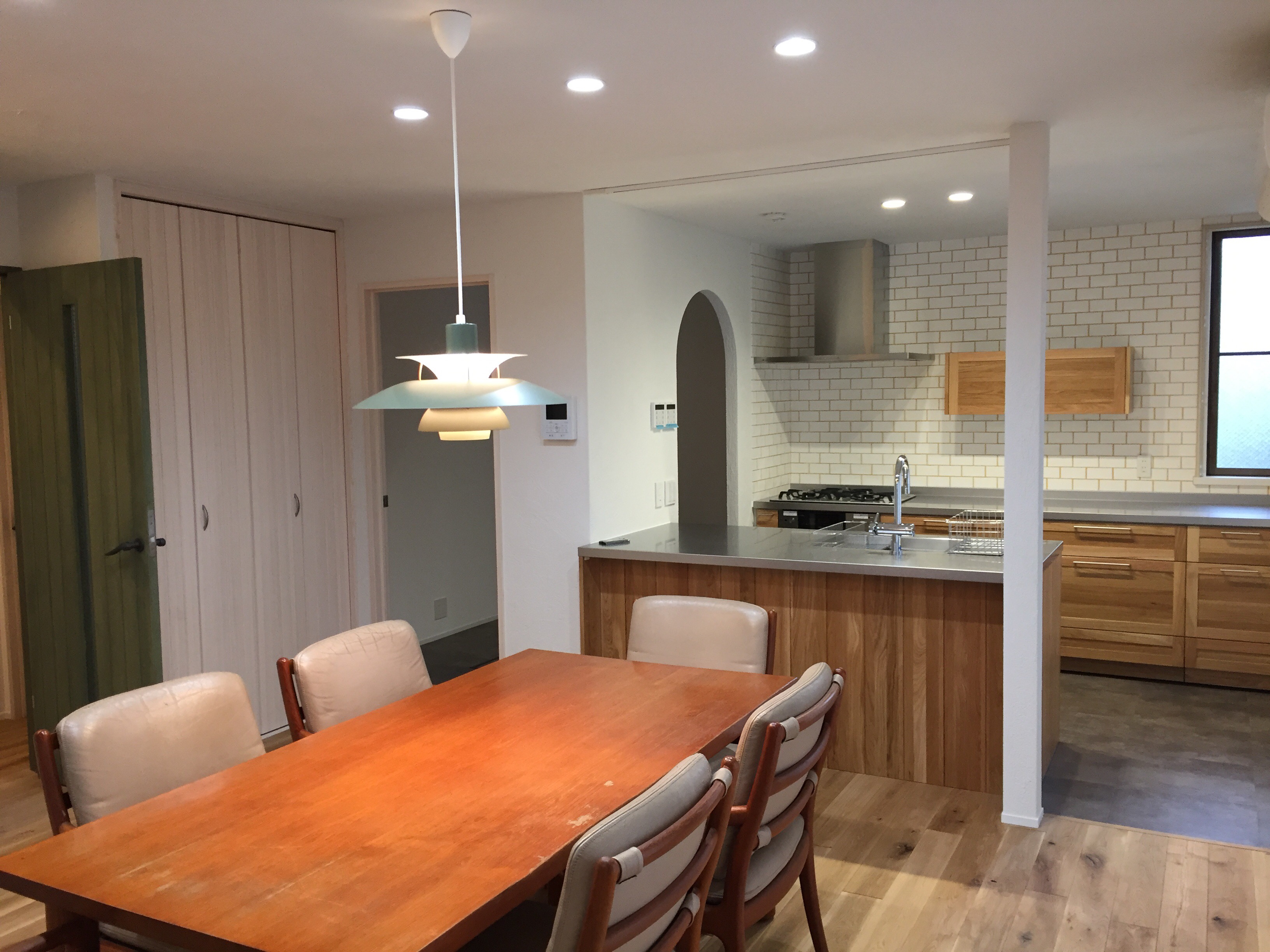 ダイニングテーブル上にはlouis poulsenのPH5…