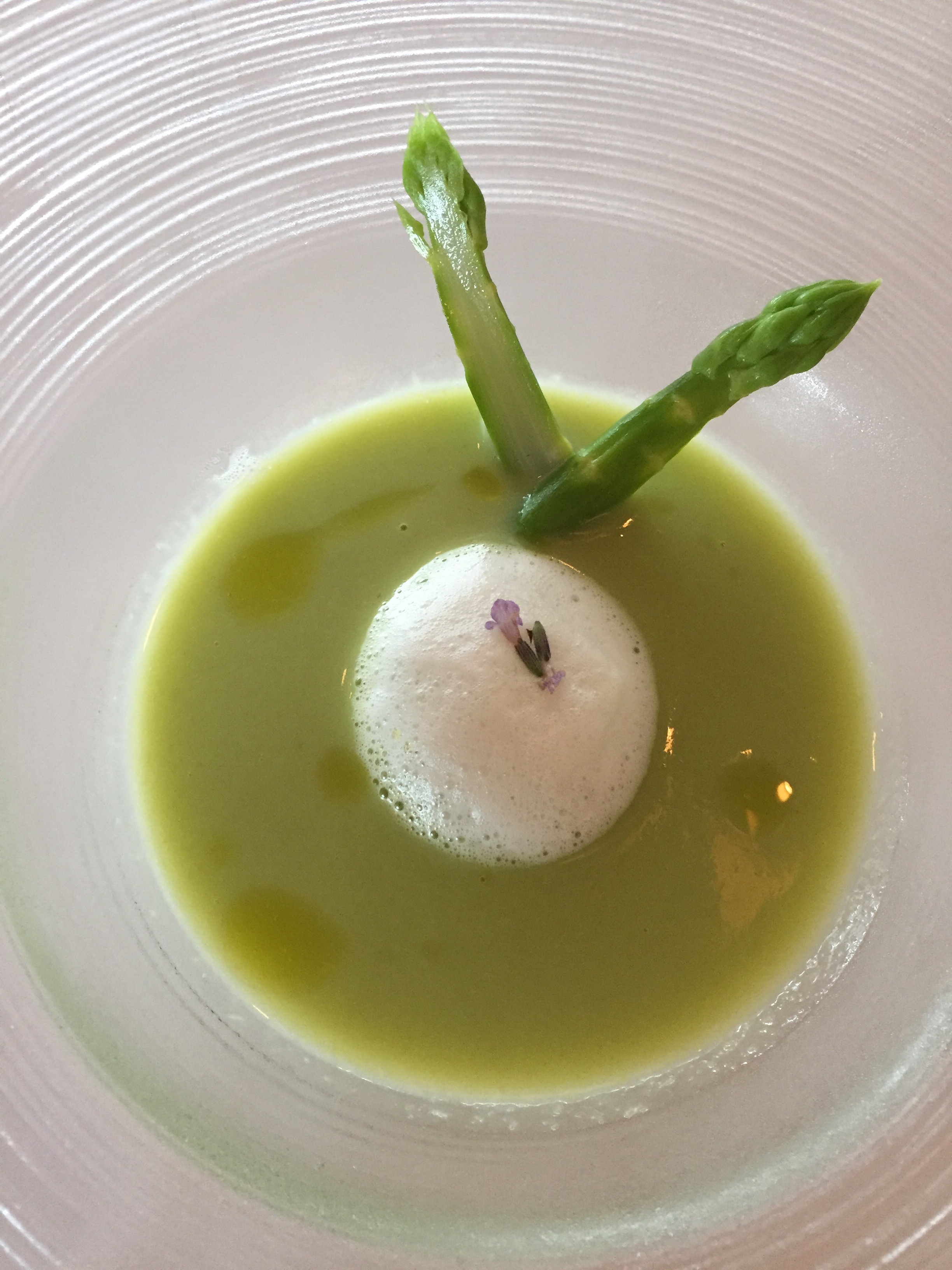 グリーンアスパラの冷製スープ夏のハーブの香り