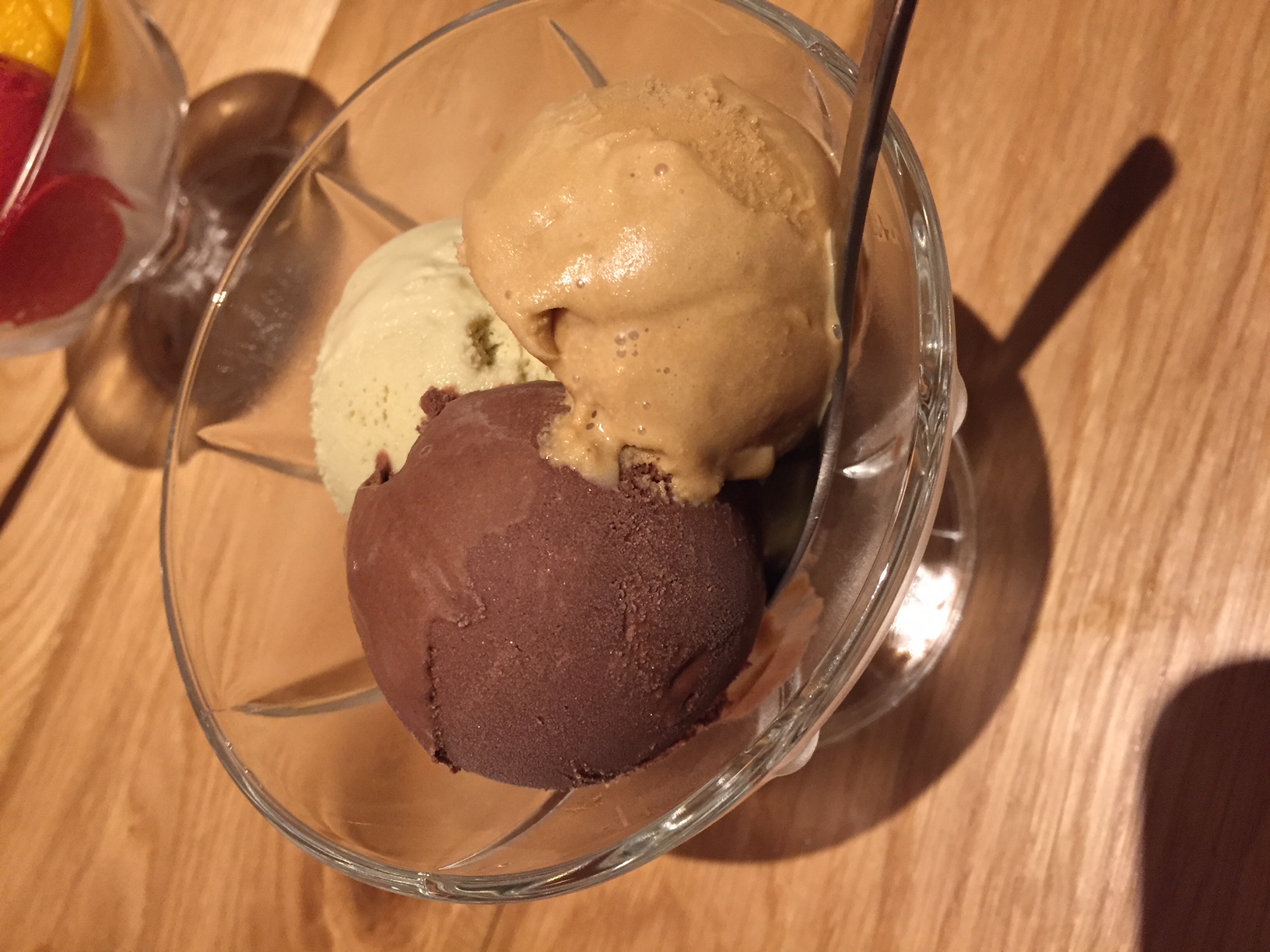 塩キャラメル、ピスタチオ、チョコアイスをいただきました。