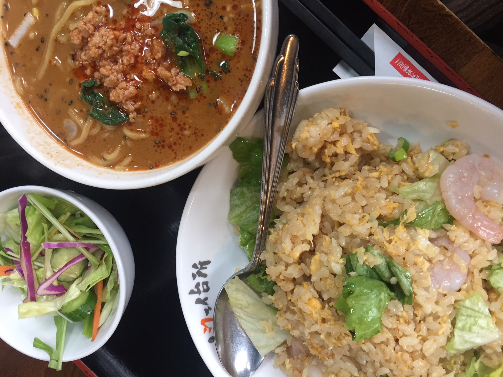 海老レタス炒飯と担々麺のボリューム昼食となりました。
