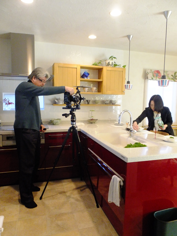 カメラマンさんの真剣な表情。一枚一枚アングル決めに集中し撮影は進みます。