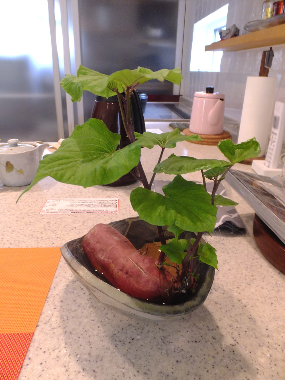このグリーンは、水栽培で育てたサツマイモです。