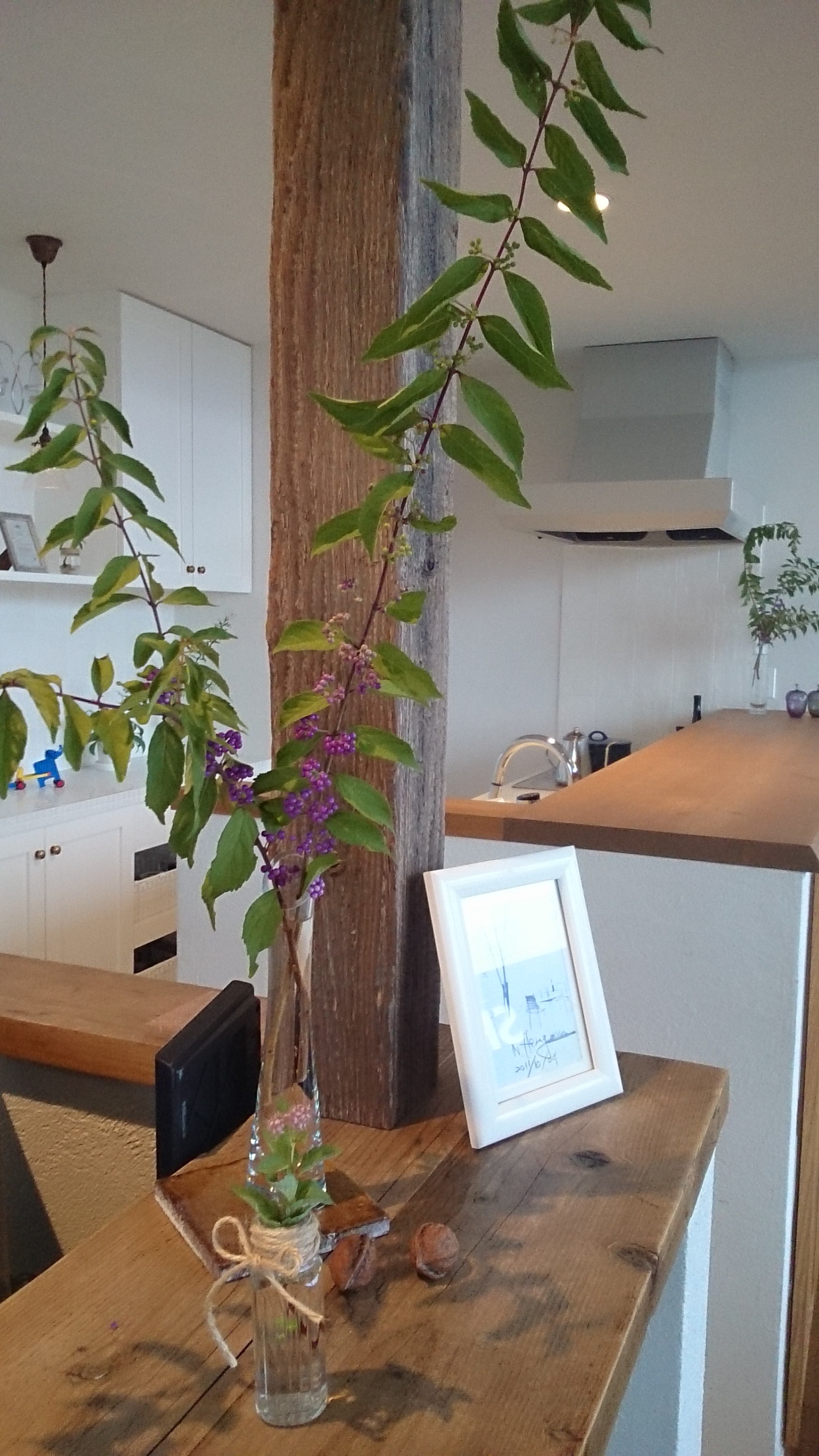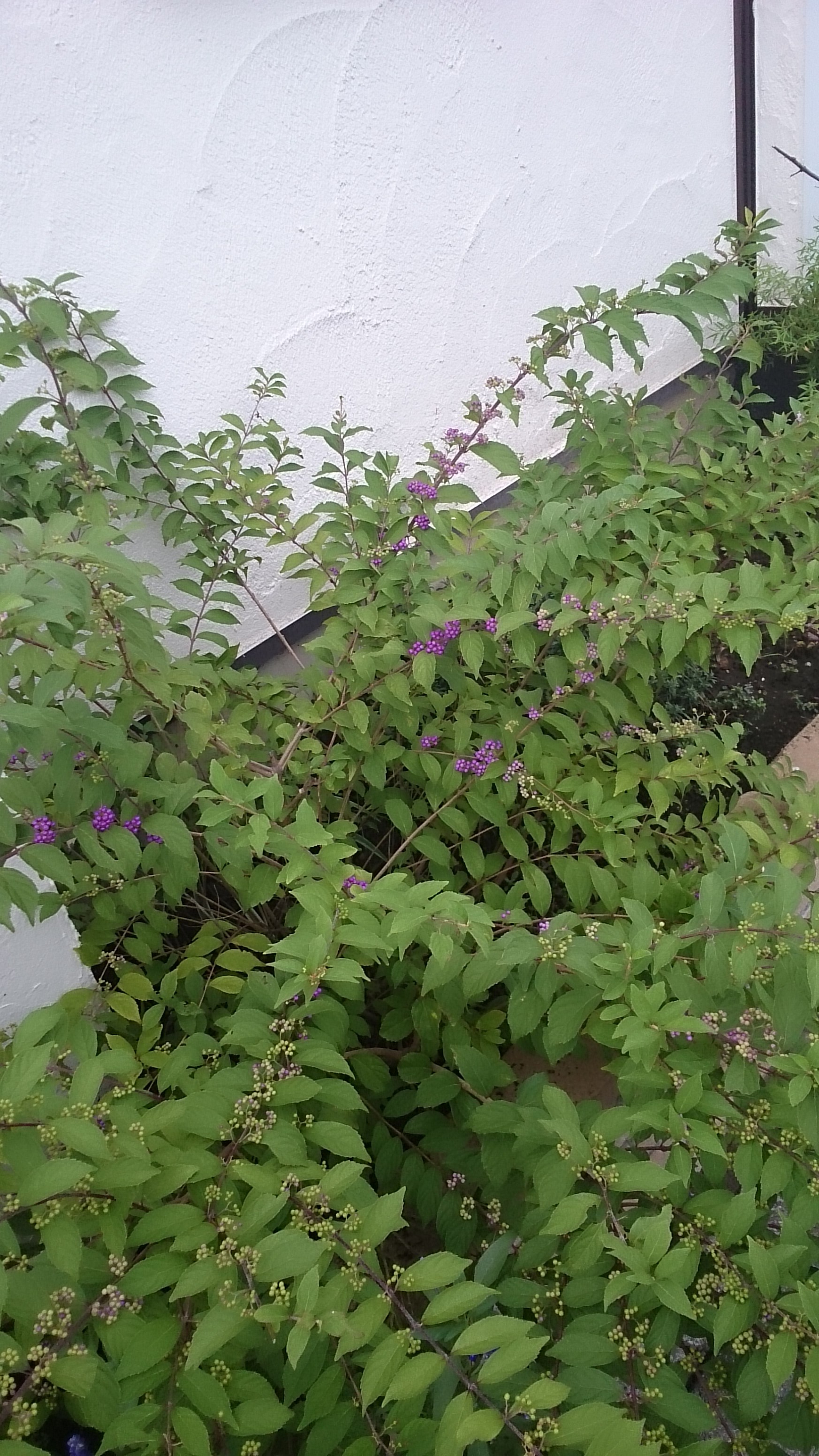 スタジオの花壇には、紫式部という植物が、秋らしく実が色づき始めました。