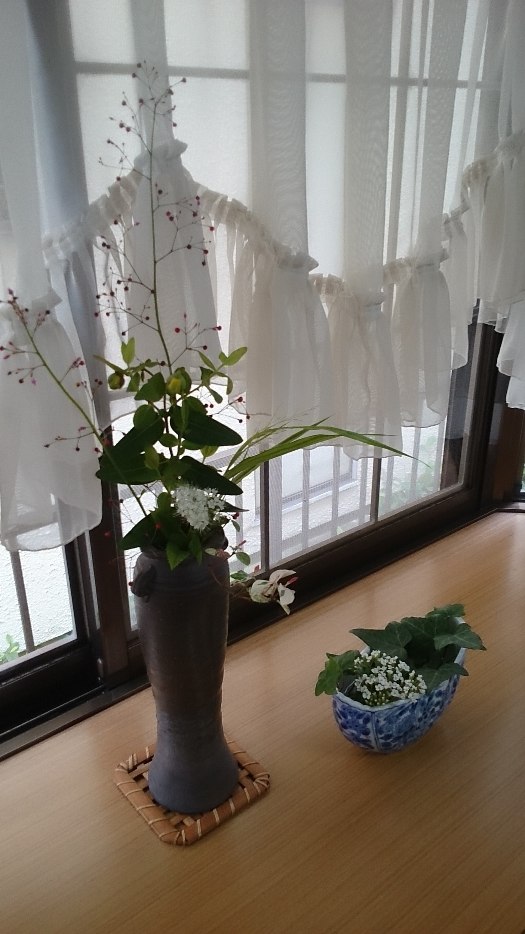 飾る植物に、素敵な和風の花器が、とても似合っています。