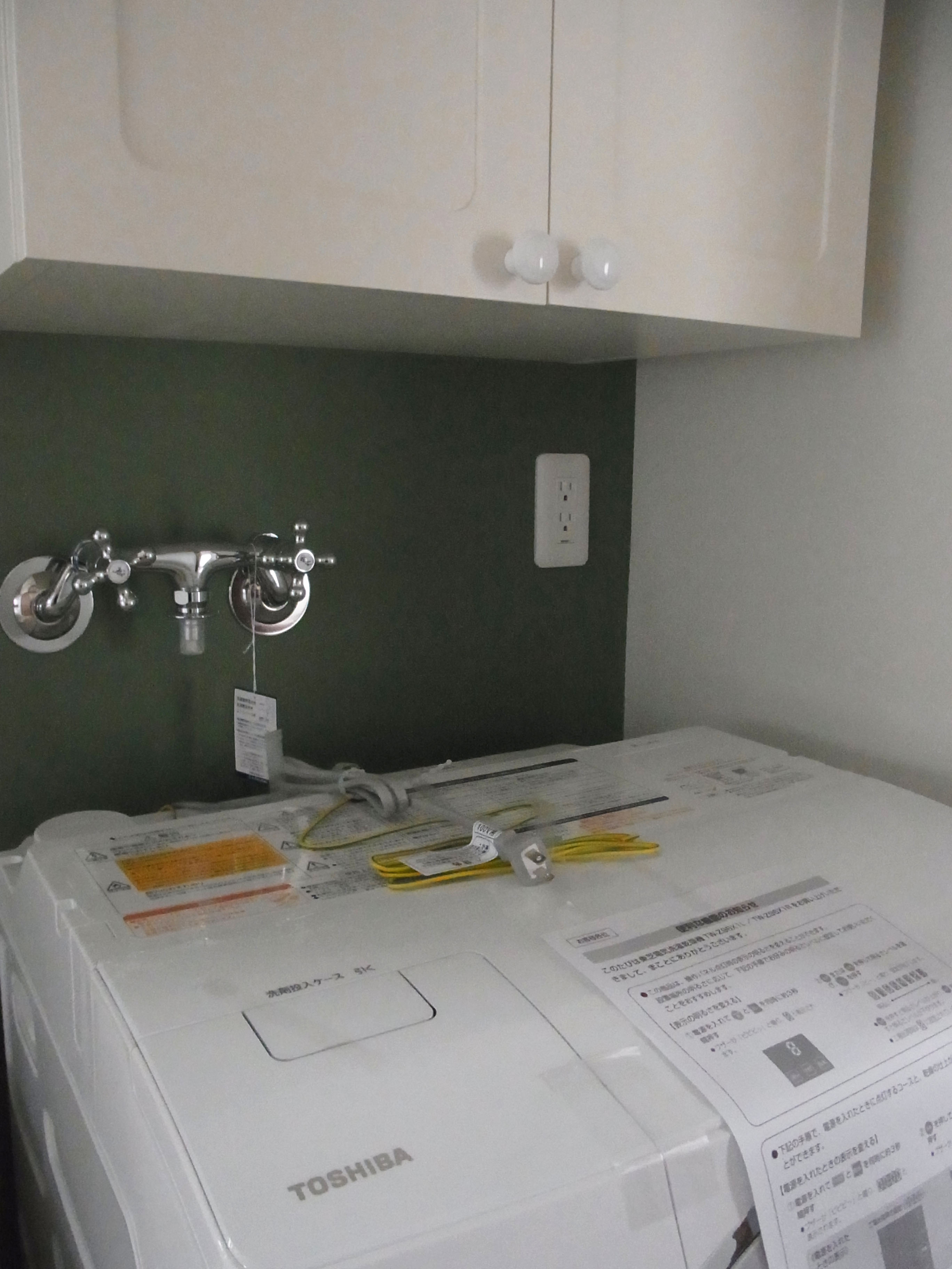 雰囲気に合わせて洗濯機用の水栓も素敵なものをセレクト。