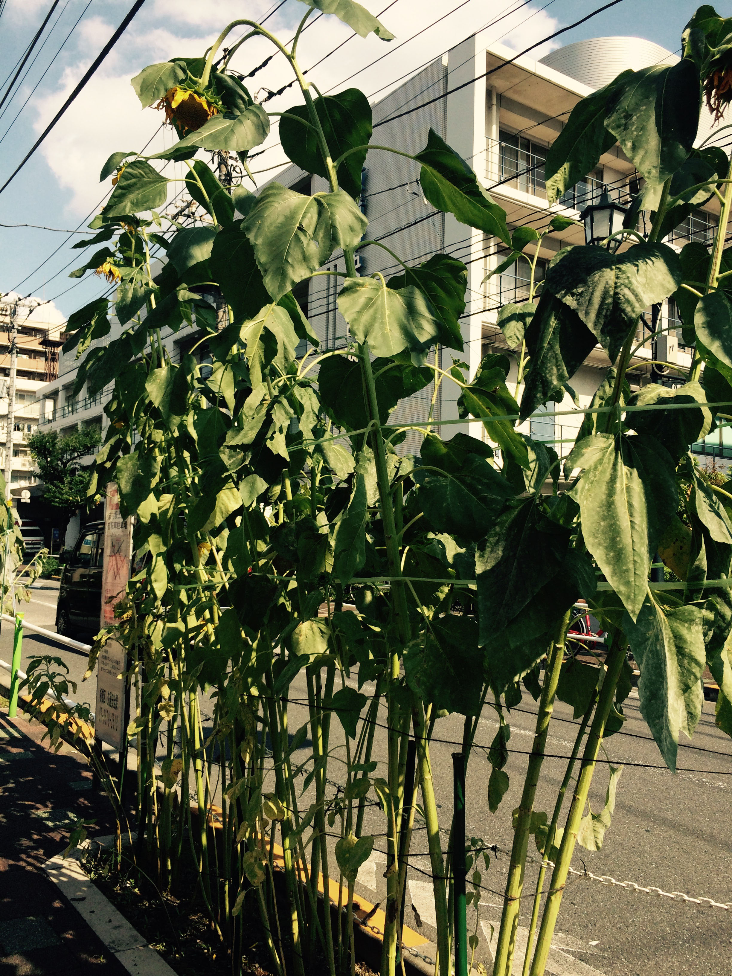 行く途中、2mを超えるヒマワリも暑さのせいか、少しぐってりしていました。
