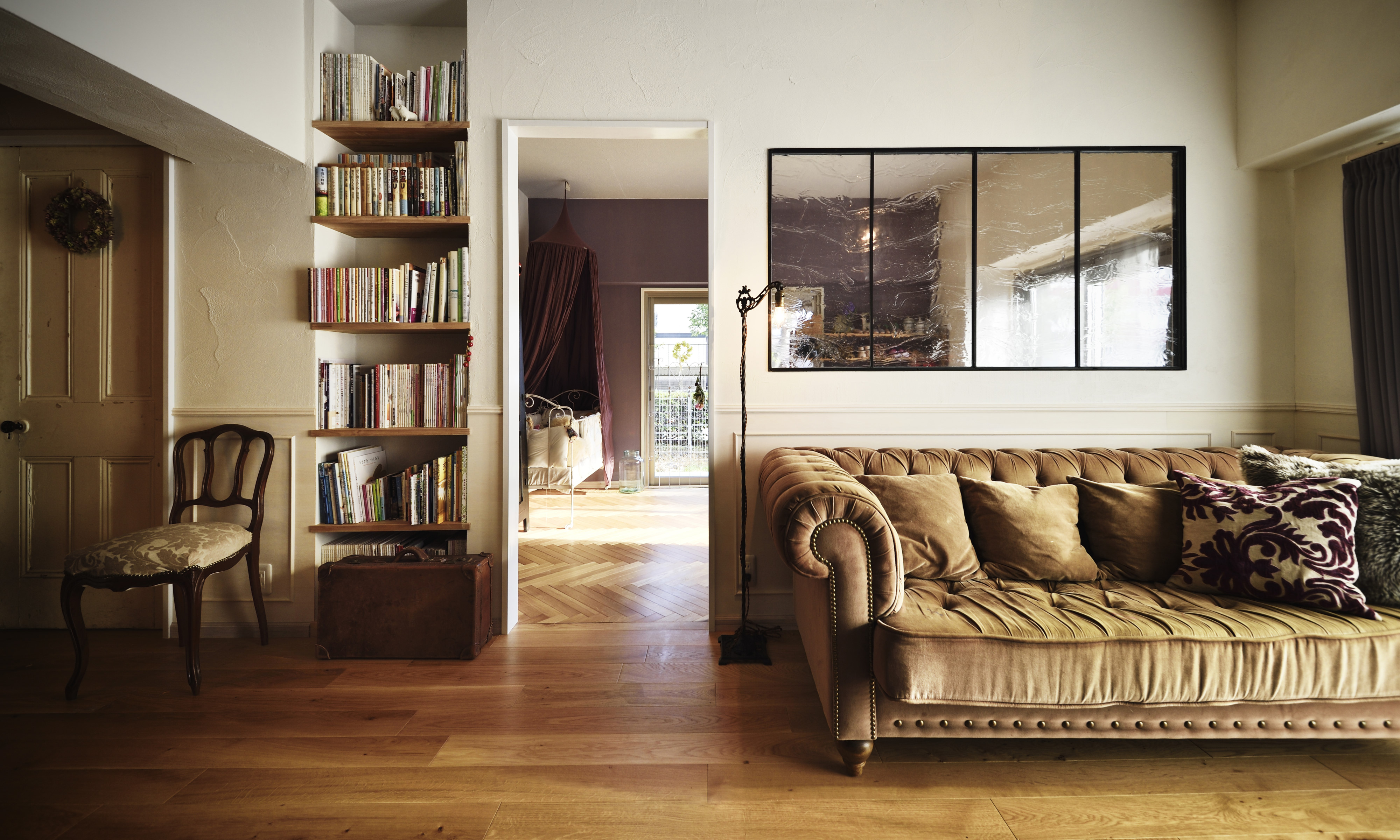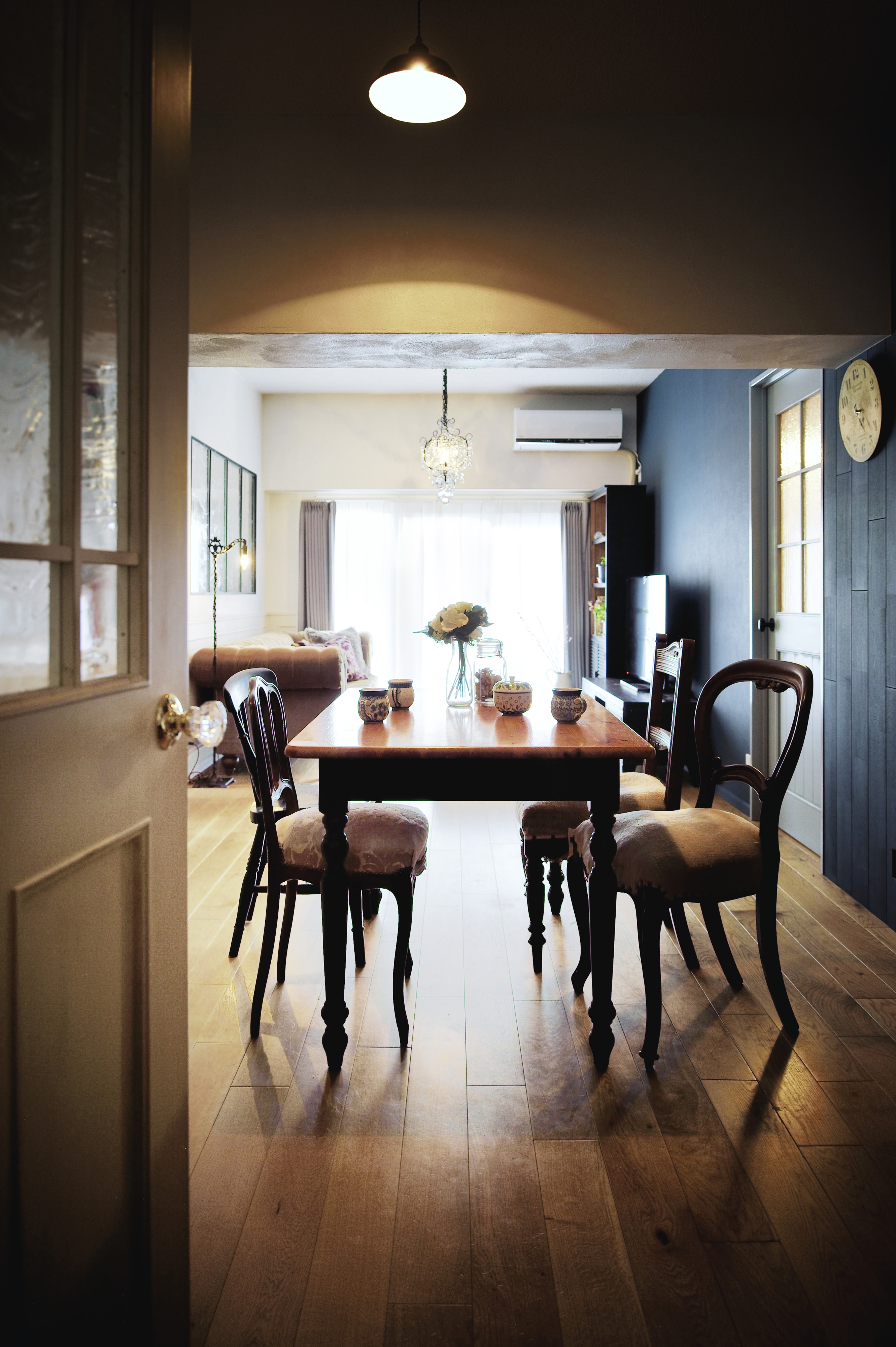 アンティーク扉やドロッグリにてオーダーした扉がインテリアの一部として