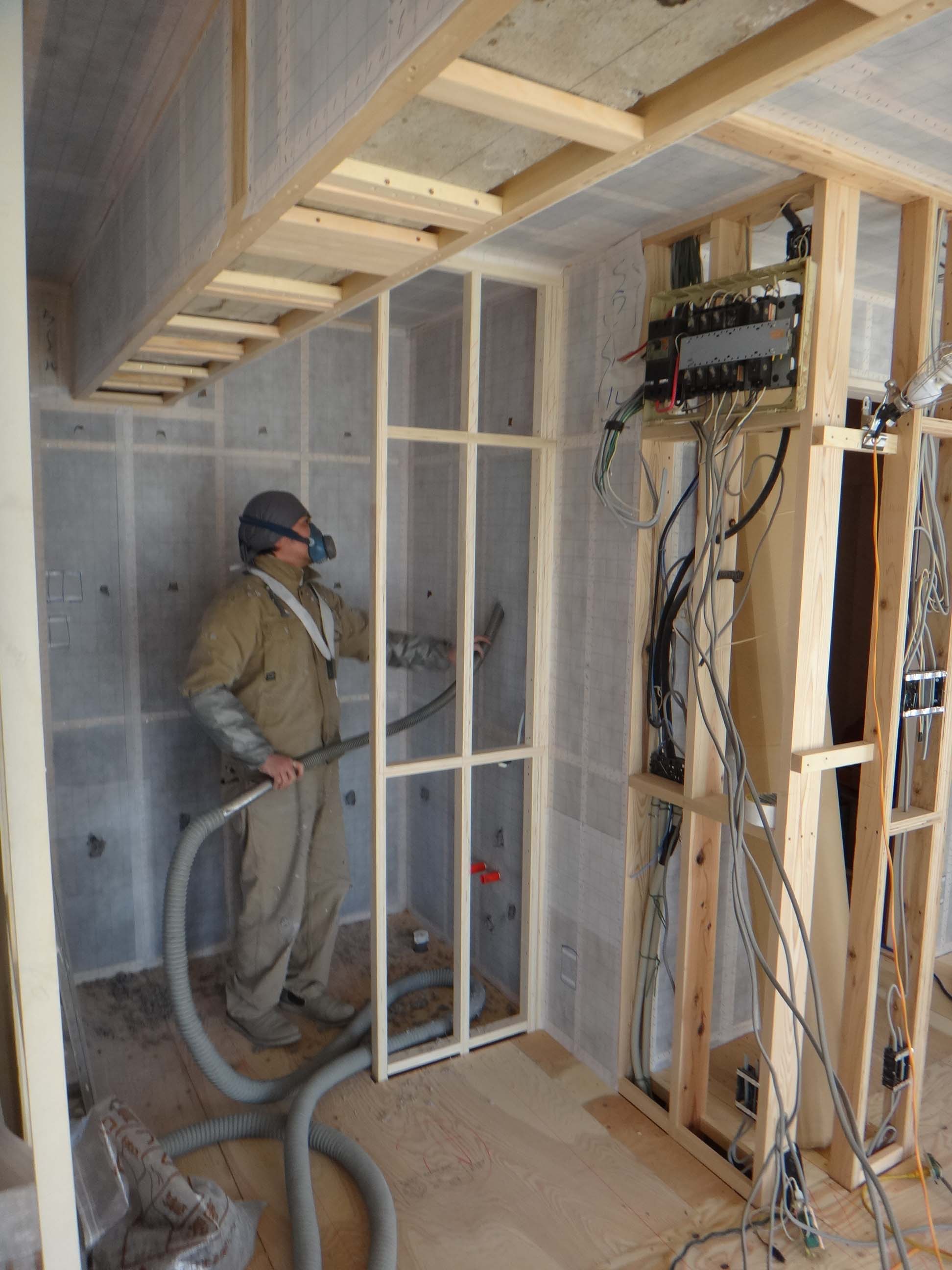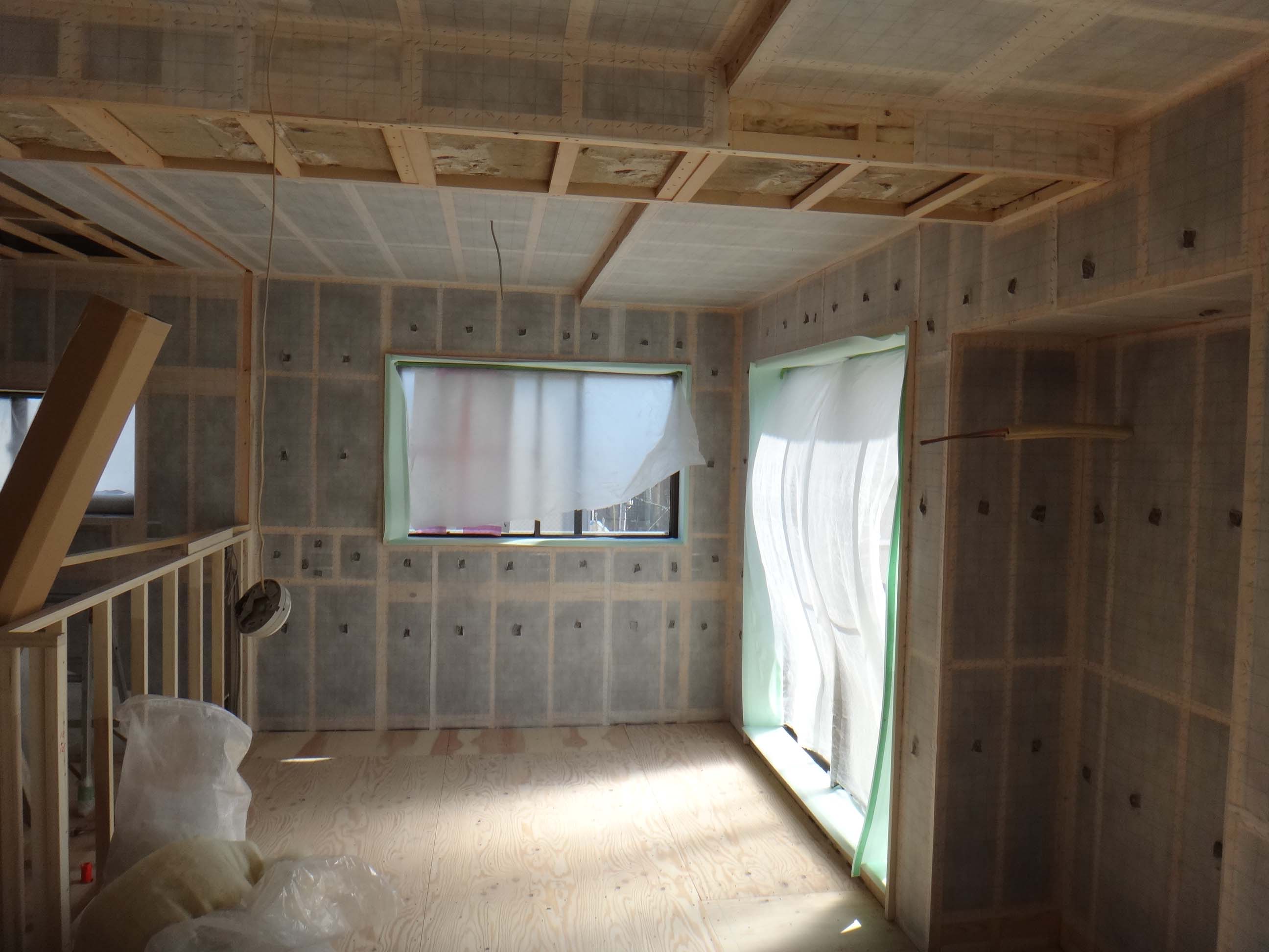 躯体の梁や出窓部分にも全てセルロースファイバーが入れていく事で