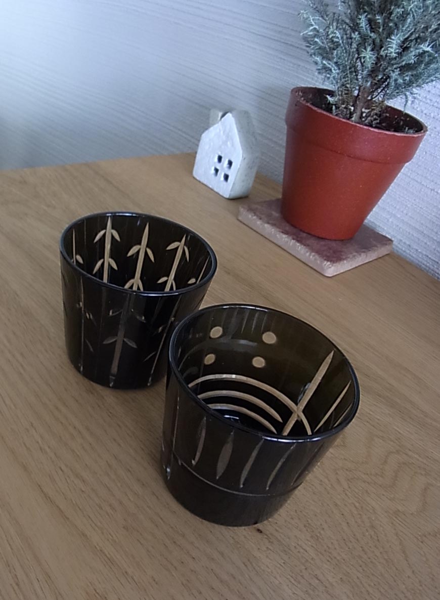 ふと目に留まった切り子のキャンドルホルダー。