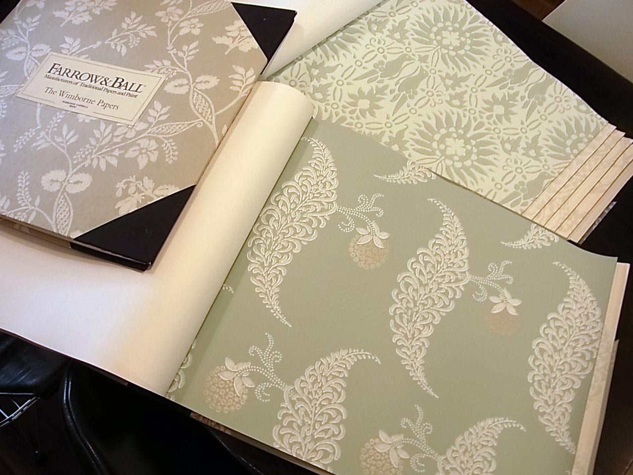 O様のお好みは淡いグリーンの草木柄とのことで、いくつかサンプルをお取りしました。