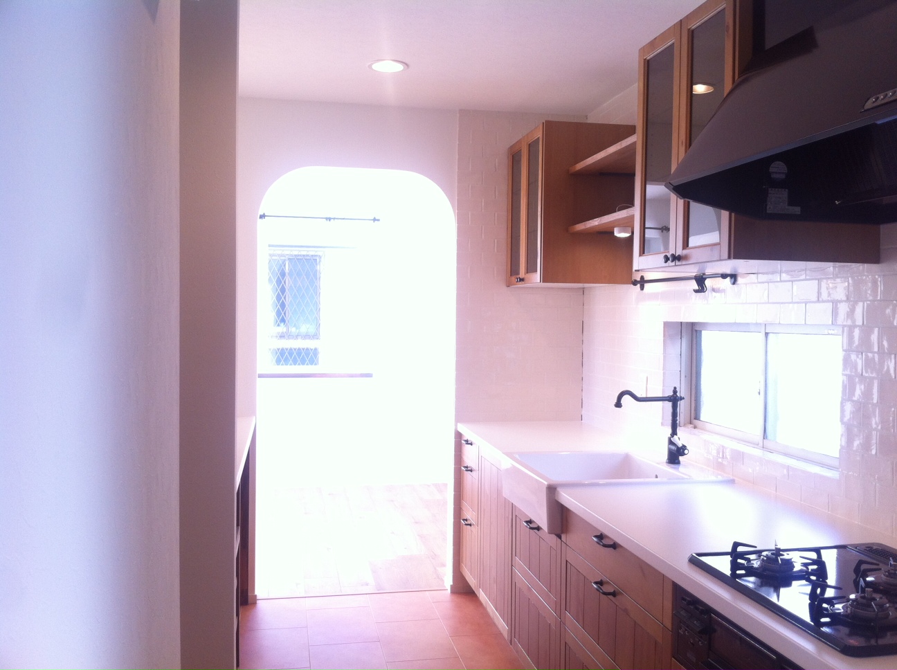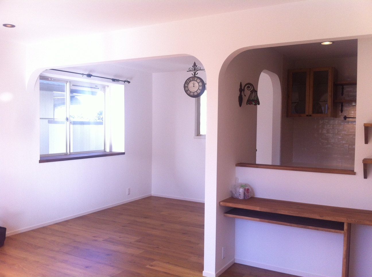 2×4で取れない下がり壁にアーチをつけて、やさしい空間にまとまりました。