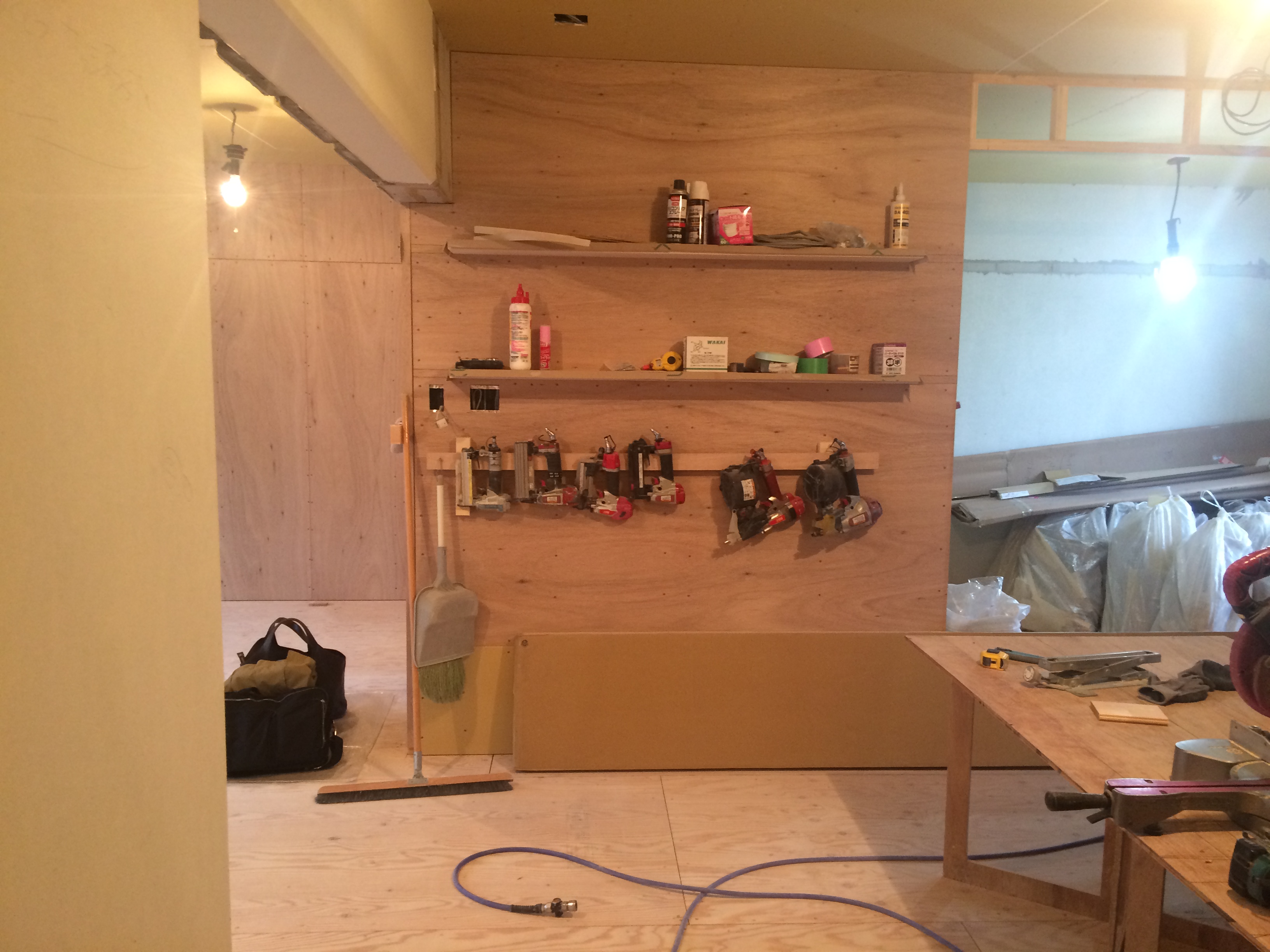 お掃除がしっかり行き届いているのはもちろん、多数の工具が整然と並べられています。