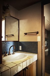 お家のなかの家具の雰囲気に合わせ、洗面台も造作で。