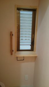 トイレの窓枠下台をあえて出っぱらせて作った、