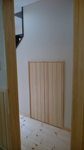 と、廊下の階段下収納の扉は取手をなくしてプッシュタイプに。