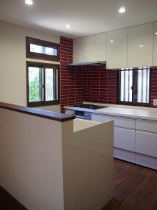 赤のタイルですが、シックな色合いで落ち着いた感じに。。。