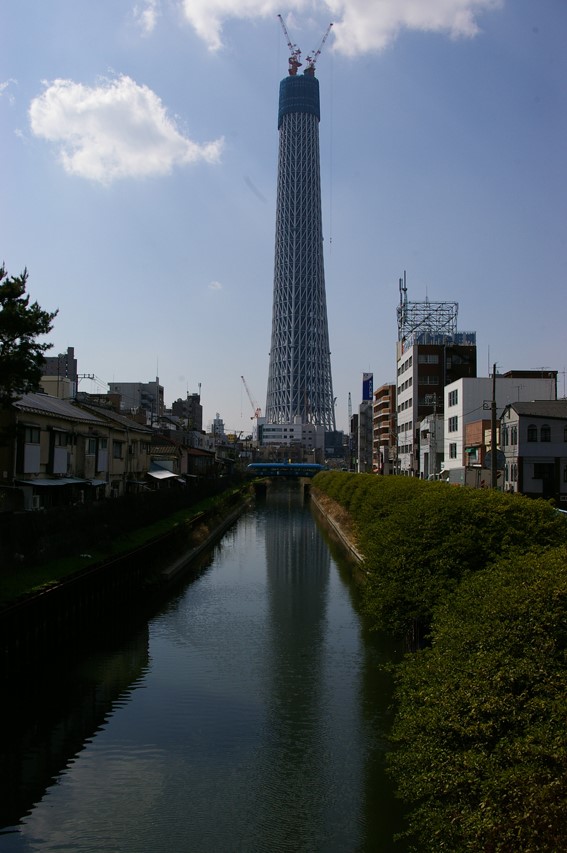 ↓こちらの写真は十間川より見た建設中のスカイツリー。後に絶景ポイントとして有名になりましたね。